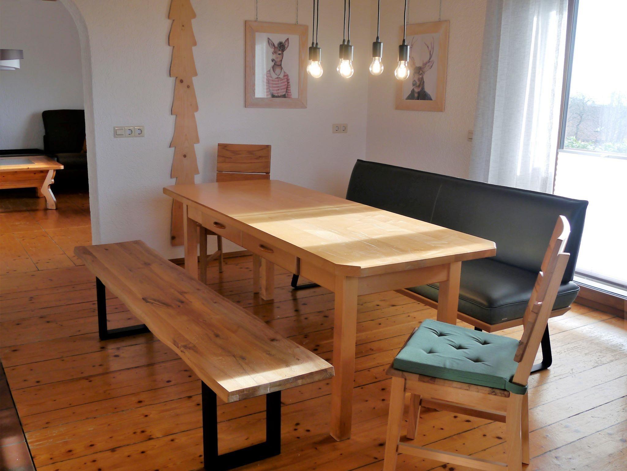 Das Selbstversorgerhaus (130 qm) verfügt über eine gut ausgestattete Küche mit Essplatz und einem gemütlichen Wohnbereich, TV, Holzofen, WLAN frei, Badezimmer mit Wanne und Dusche, separates WC, 2 Doppelzimmer und 1 Vierbettzimmer, Balkon, Terrasse. Alle Räumlichkeiten befinden sich auf einer Etage im Erdgeschoss. Der Parkplatz liegt unmittelbar vor dem Haus.
