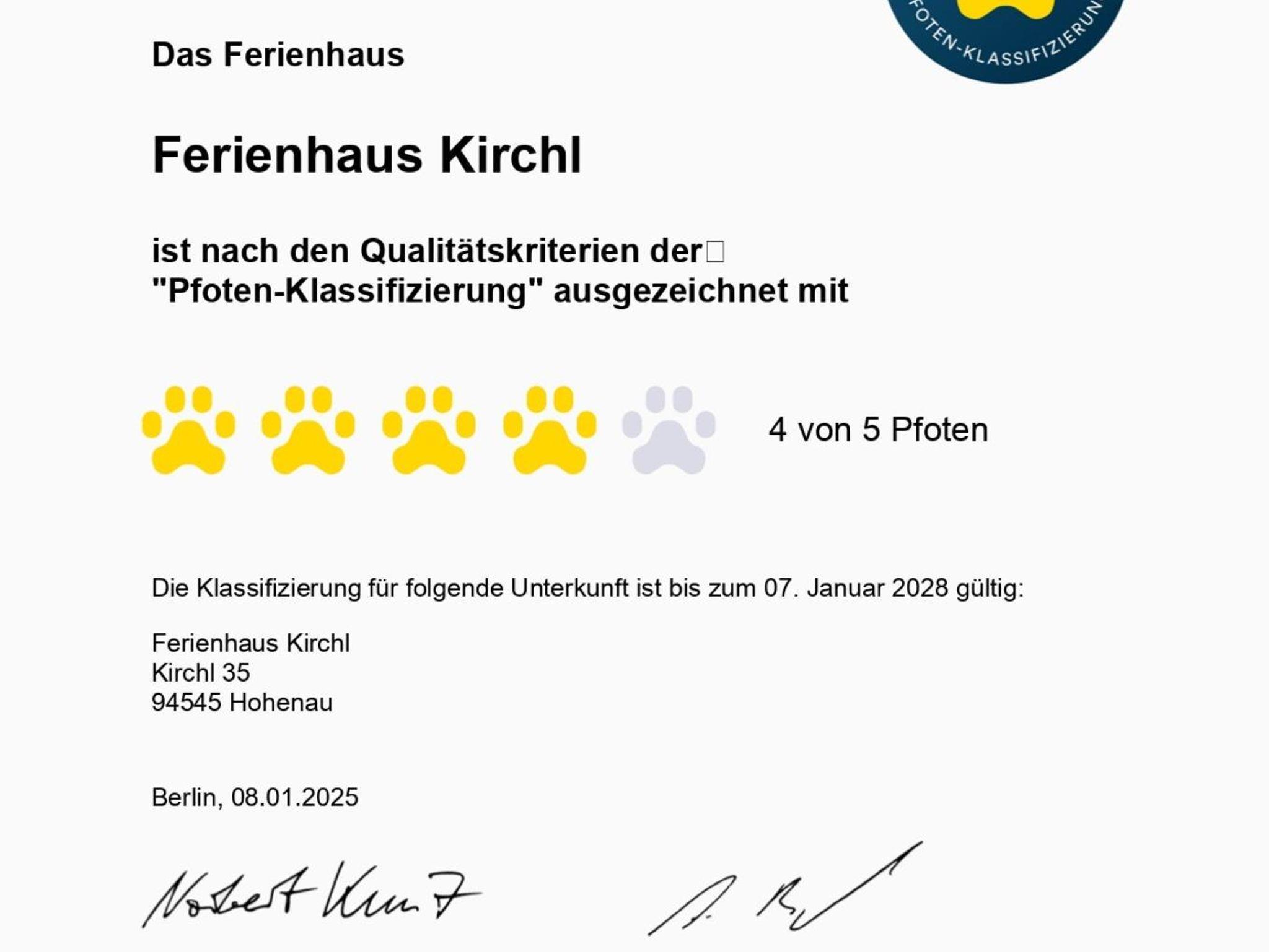 Das komplett umzäunte Ferienhaus Kirchl liegt in der Gemeinde Hohenau im Bayerischen Wald direkt am ältesten Nationalpark Deutschlands. Naturfreunde, Wander- Sport- und Aktivbegeisterte finden hier ein attraktives Angebot an Wander- und Radwegen, Skipisten und Langlaufloipen. Das eingezäunte Ferienhaus eignet sich besonders für Familien mit Kindern und natürlich auch Hunden. Die Unterkunft wurde vom Deutschen Tourismusverband mit einer 3 Sterne - und 4 Pfoten - Klassifizierung ausgezeichnet.