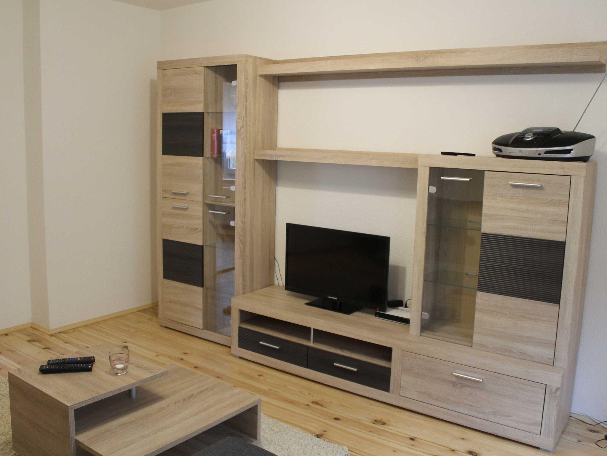 Wohnzimmer: Couch mit zusätzlicher Schlafmöglichkeit, TV, Multifunktionsradio