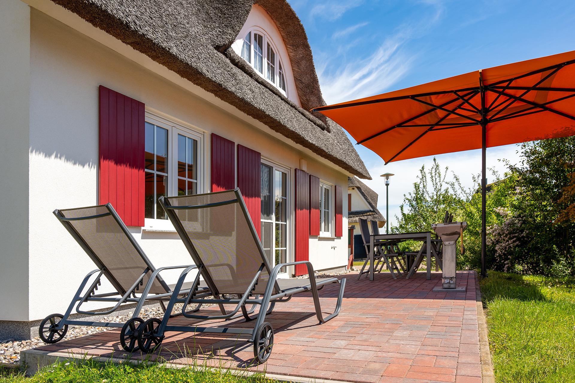 Entspannen Sie sich vor dem Flat-TV mit Soundbar und Radio oder nutzen Sie den Fernseher im Schlafzimmer im Obergeschoss. Auf der Terrasse erwarten Sie ein Grill und Gartenmöbel für gemütliche Stunden im Freien. Ein Bollerwagen steht optional für Ihre Strandabenteuer zur Verfügung.