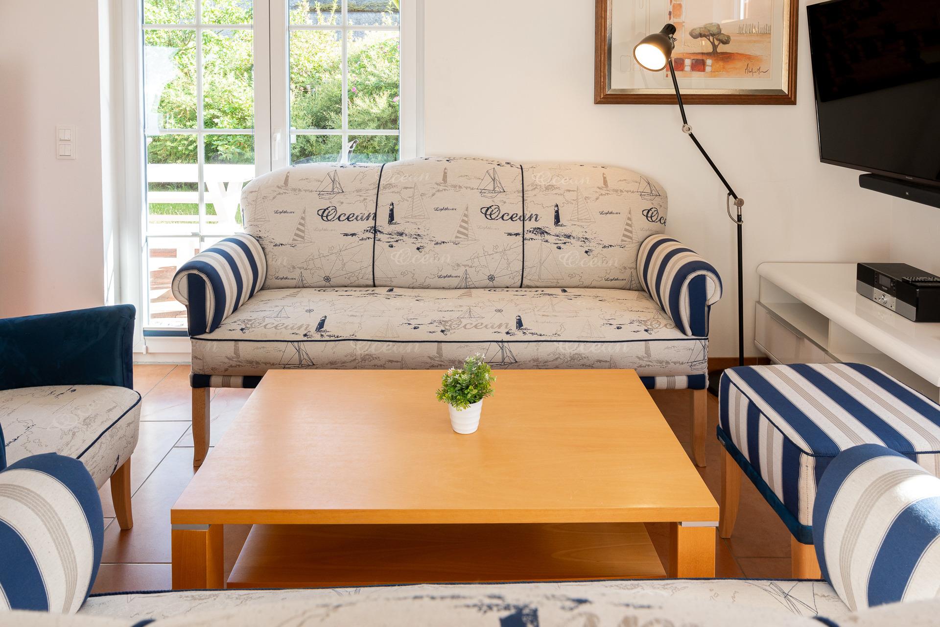 Auf der möblierten Terrasse können Sie den Tag bei einem Grillabend entspannt ausklingen lassen. Für Strandtage oder Ausflüge steht Ihnen auf Wunsch ein Bollerwagen zur Miete bereit.