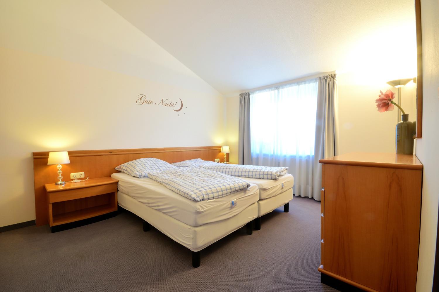 In den beiden Schlafzimmern, die sich im Obergeschoss befinden, können Sie sich richtig ausschlafen. Beide Zimmer sind mit hochwertigen Betten, Matratzen und Lattenrosten ausgestattet. In jedem der beiden Schlafzimmer steht Ihnen ein Kinderbett und ein bzw. zwei Kleiderschränke bzw. eine Kommode zur Verfügung. Aus einem Schlafzimmer haben Sie ebenfalls einen traumhaften Ausblick über die Halbinsel bis zur Ostsee.
