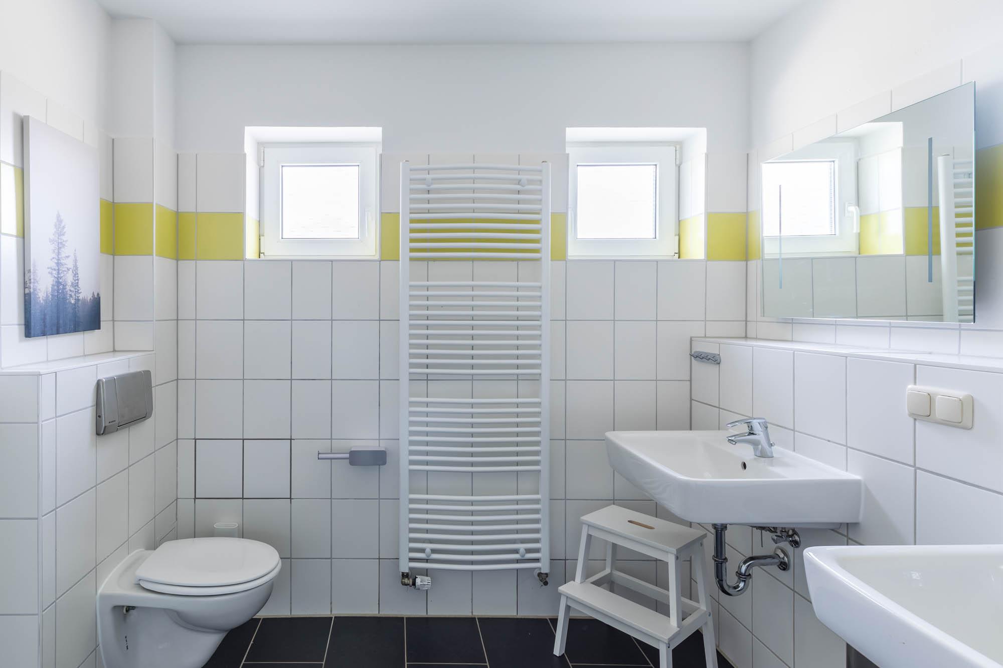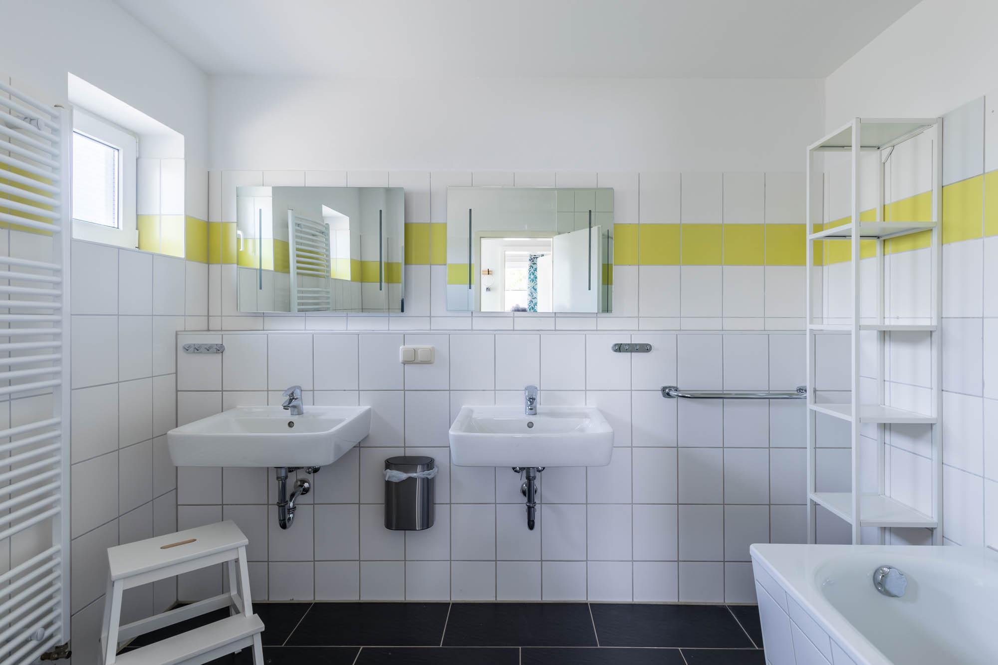 Zwei getrennte Badezimmer und zwei WCs sorgen für die nötige Entspannung im Familienurlaub. Die im Badezimmer integrierte Sauna darf gern genutzt werden.