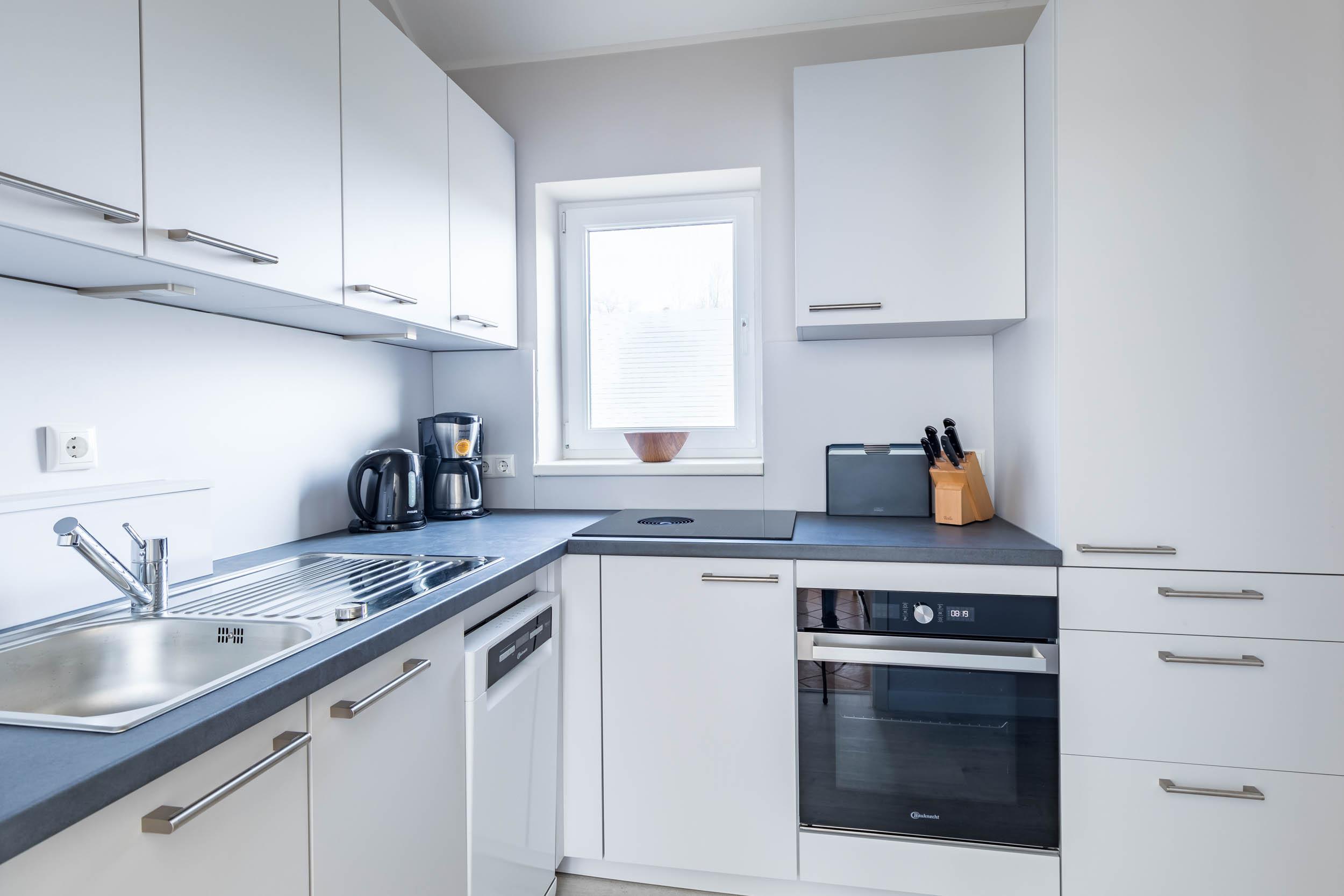 Die räumlich abgeteilte Küche ist mit allem, was Sie zum Kochen benötigen, ausgestattet.