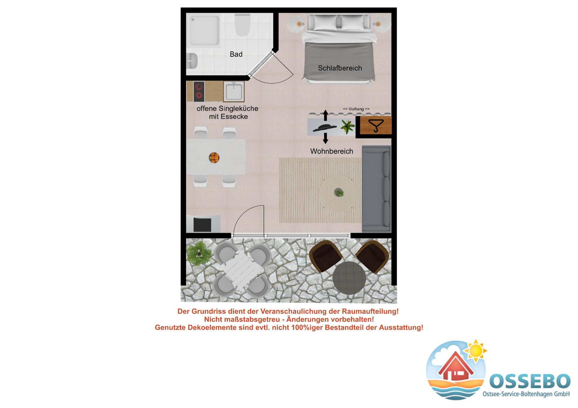In dieser schönen 1-Zimmer-Wohnung im Erdgeschoss können bis zu 3 Gäste auf rund 40qm Wohnfläche einen erholsamen Ostseeurlaub verbringen.