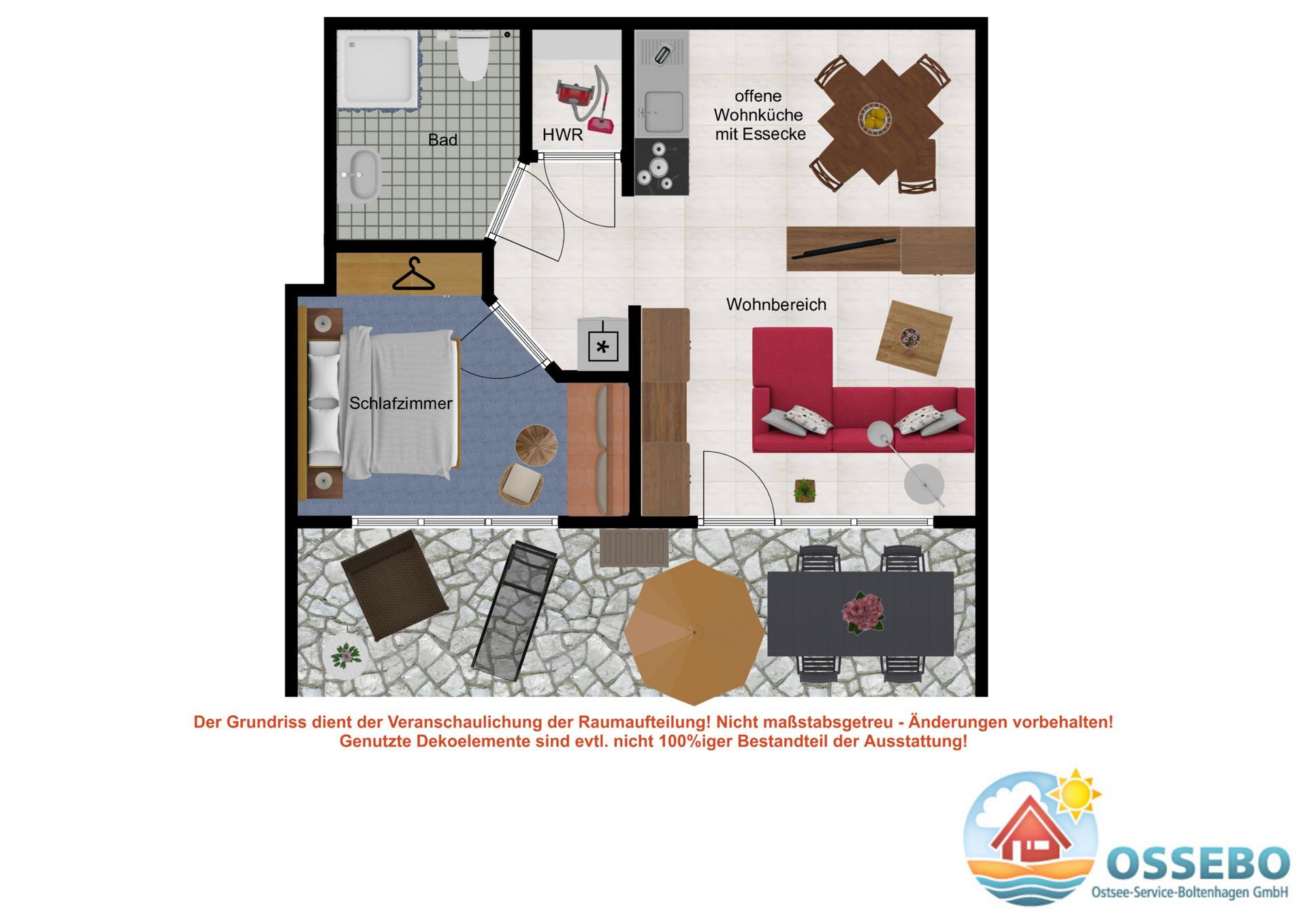 Die barrierefreie Nichtraucher-Wohnung ist für Familien und auch für "Best Ager" geeignet. Über den separaten Eingang von der Terrasse gelangen Sie direkt in die Wohnung. Für unsere kleinsten Gäste stehen hier auch schon ein Reisebettchen mit passender Matratze sowie ein Hochstuhl zur kostenlosen Nutzung bereit.
