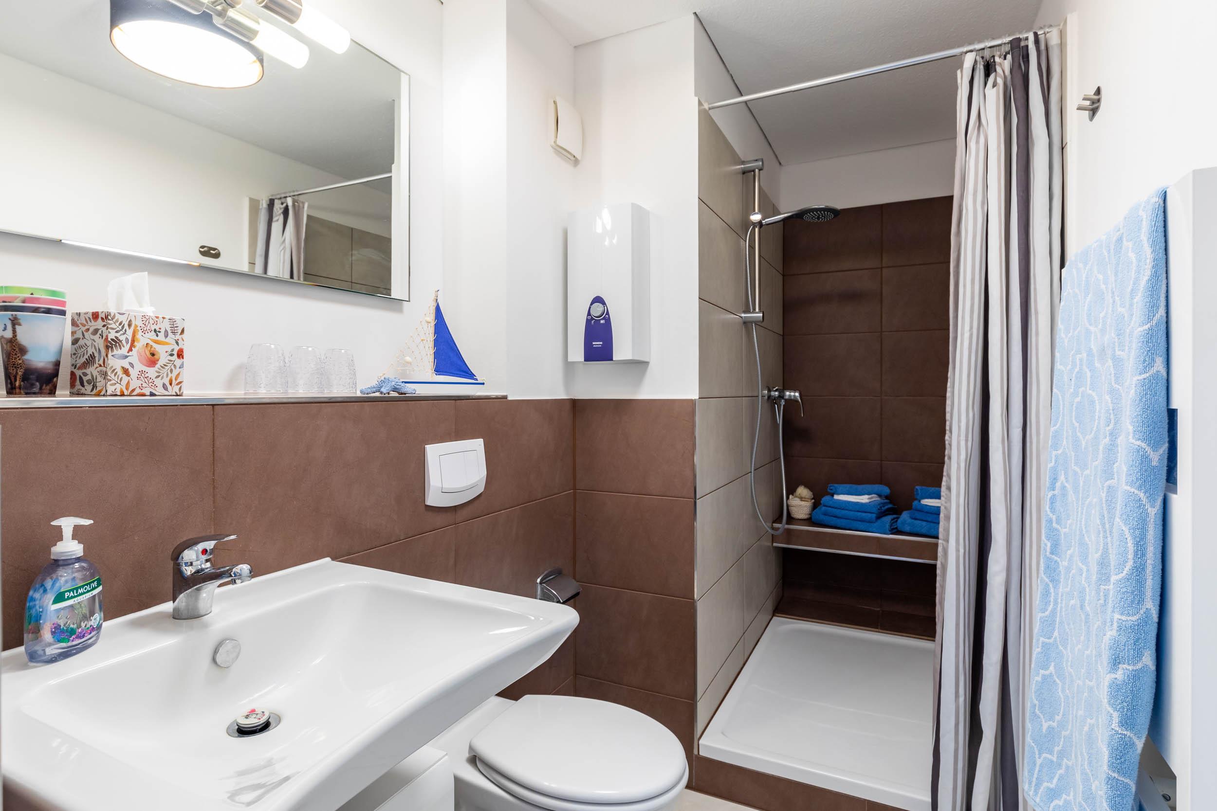 Ebenso befindet sich auf dieser Etage das Bad mit Dusche und WC.