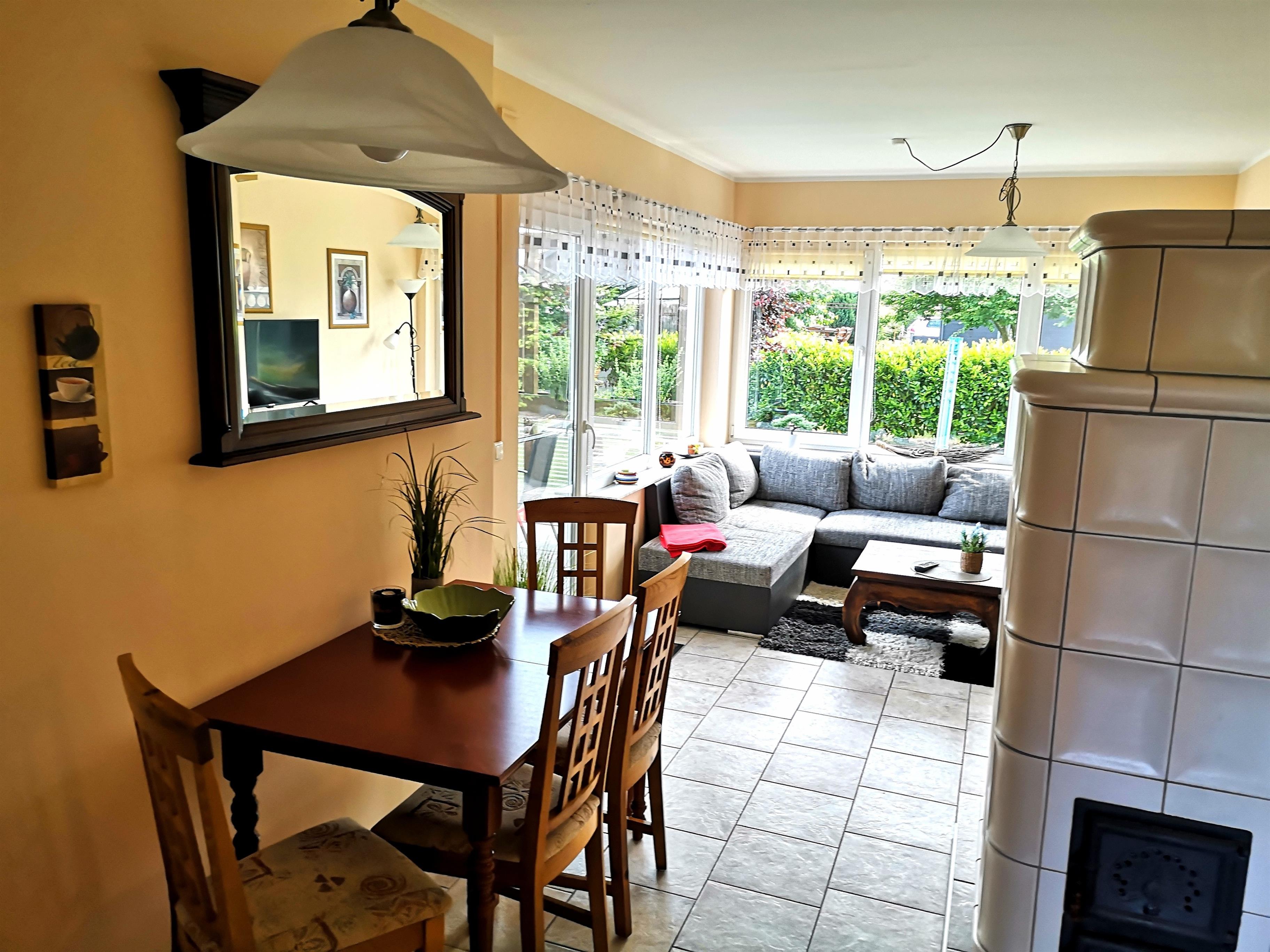 Die zweite Wohnung besteht aus 2 Schlafzimmern, Bad mit Dusche, Gäste WC, einer Küche, einem Wohnzimmer mit Blick in den Garten und einem tollen Kachelofen,Vom Wohnzimmer geht man über die eigene Terrasse in den Garten.Die Wohnung ist für 4 Personen super geeignet.