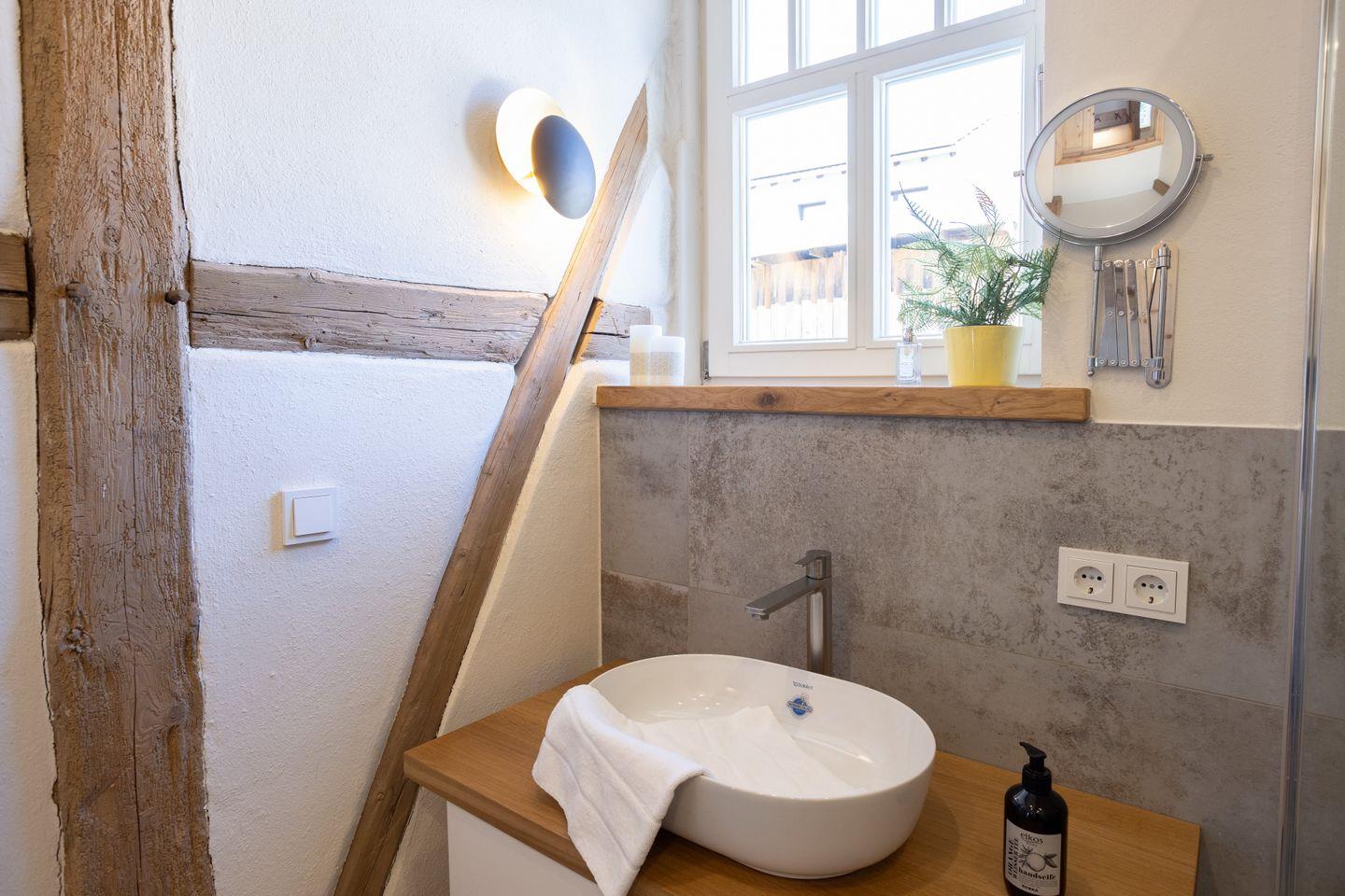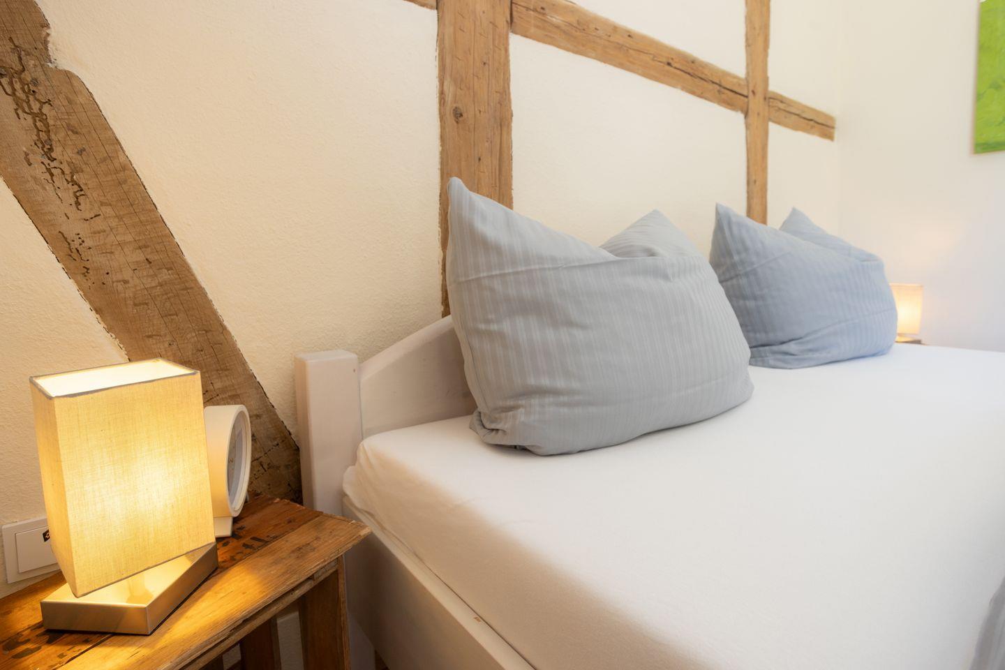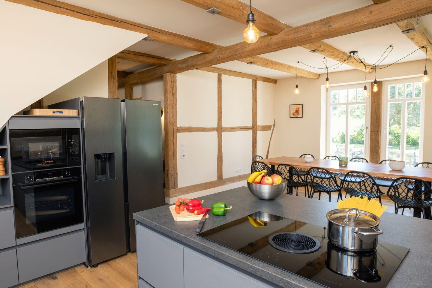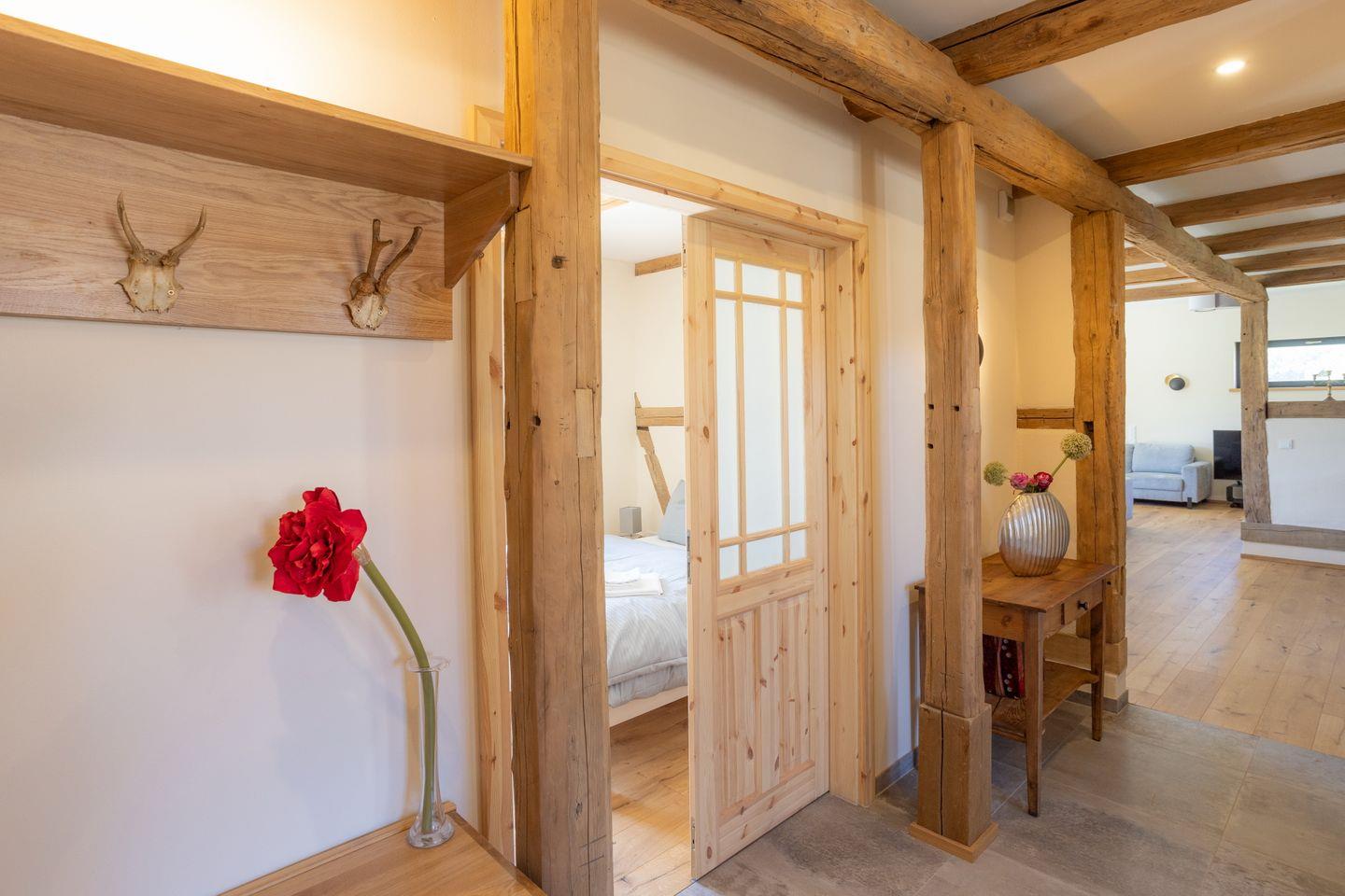Der Neubau wurde mit originalem Fachwerk neu errichtet – so entsteht ein besonderes Wohngefühl zwischen Tradition und modernem Komfort.
