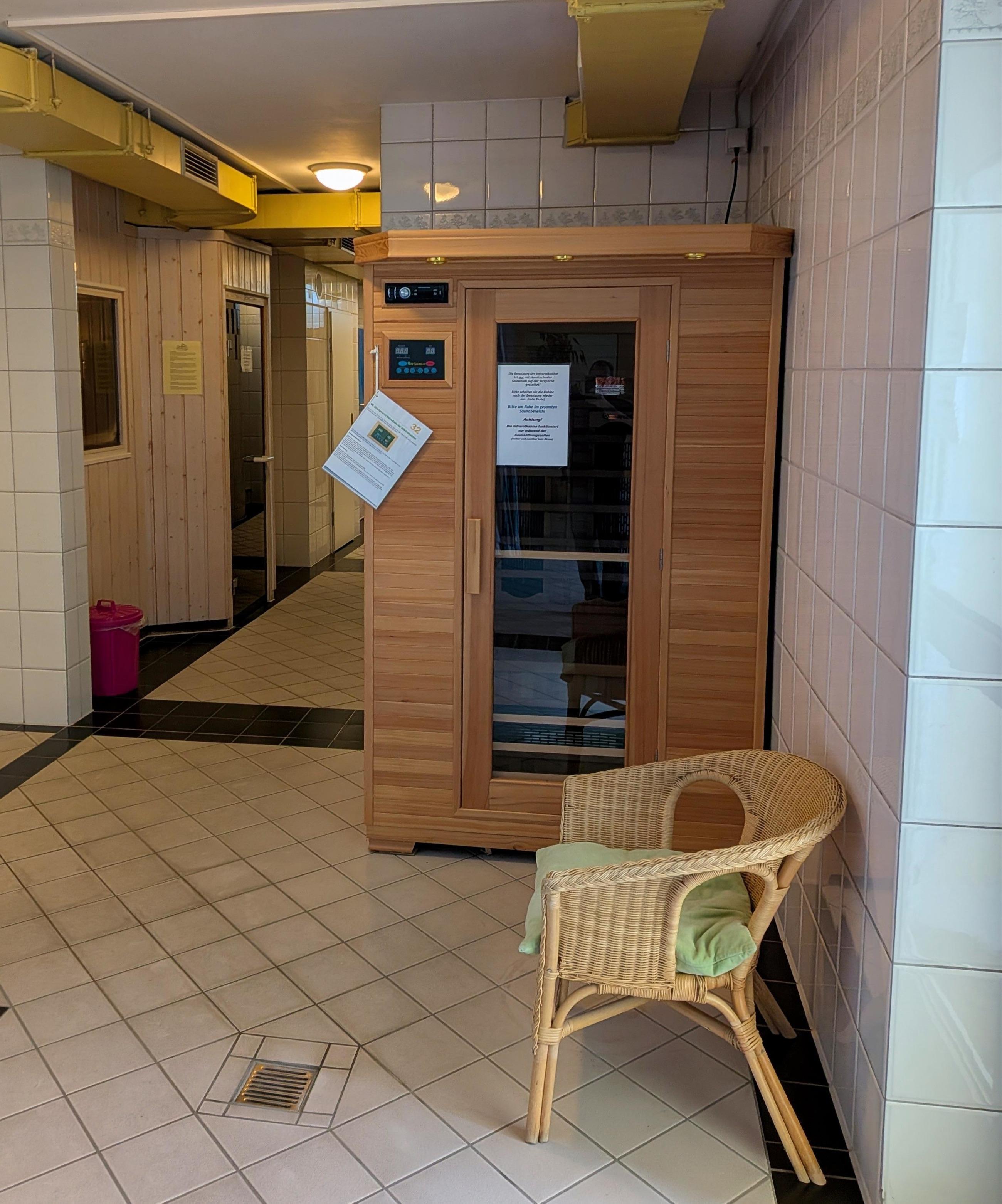 Die Sauna und Infrarotkabine sind in den Wintermonaten nach vorheriger Anmeldung an der Rezeption und der Mindesteilnehmerzahl von 3 Personen dienstags, donnerstags und samstags ab 15 Uhr geöffnet.