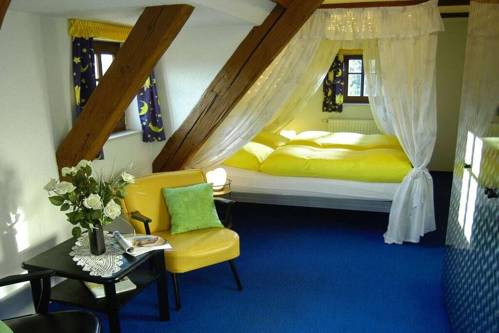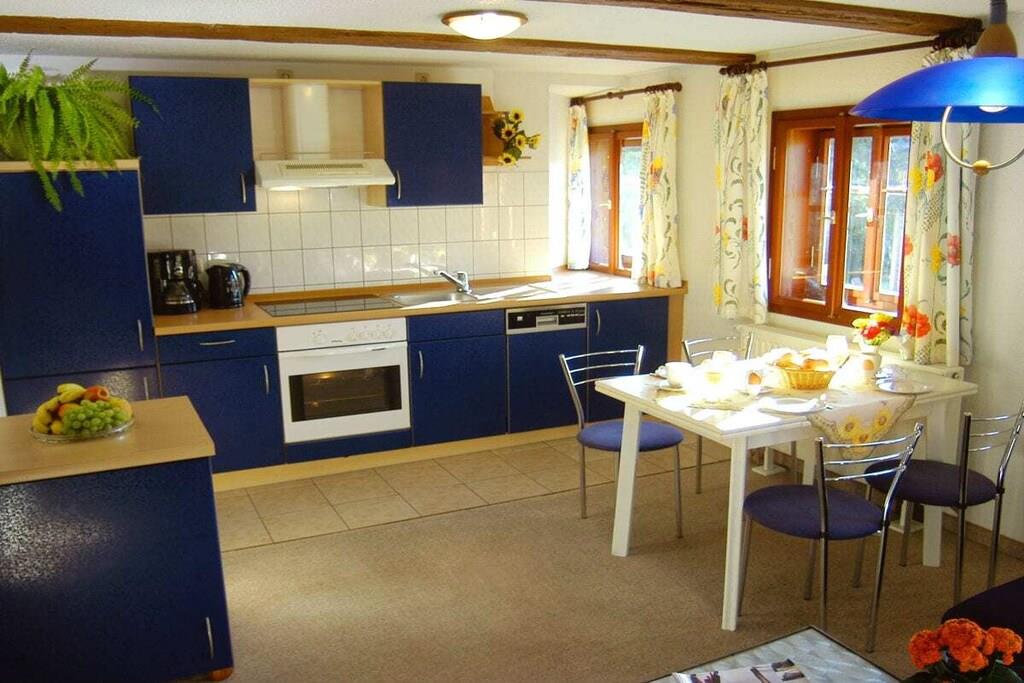 Nyd de fantasifuldt og komfortabelt møblerede værelser. Ferielejligheden har 2 separate soveværelser, 2 brusere/toiletter og en stue med køkken, i alt ca. 70 m². Vores feriehus er roligt, men centralt beliggende. Omkring ejendommen er der store åbne områder, en legeplads, et siddeområde med parasol og grill samt en trampolin i haven. Vi har installeret en opvaskemaskine! Wi-Fi er nu tilgængeligt for vores gæster!