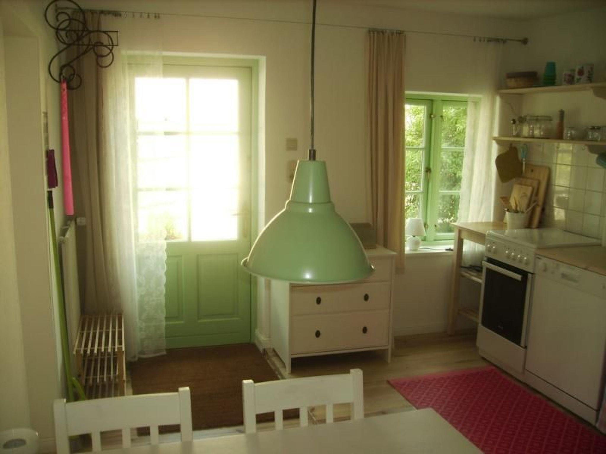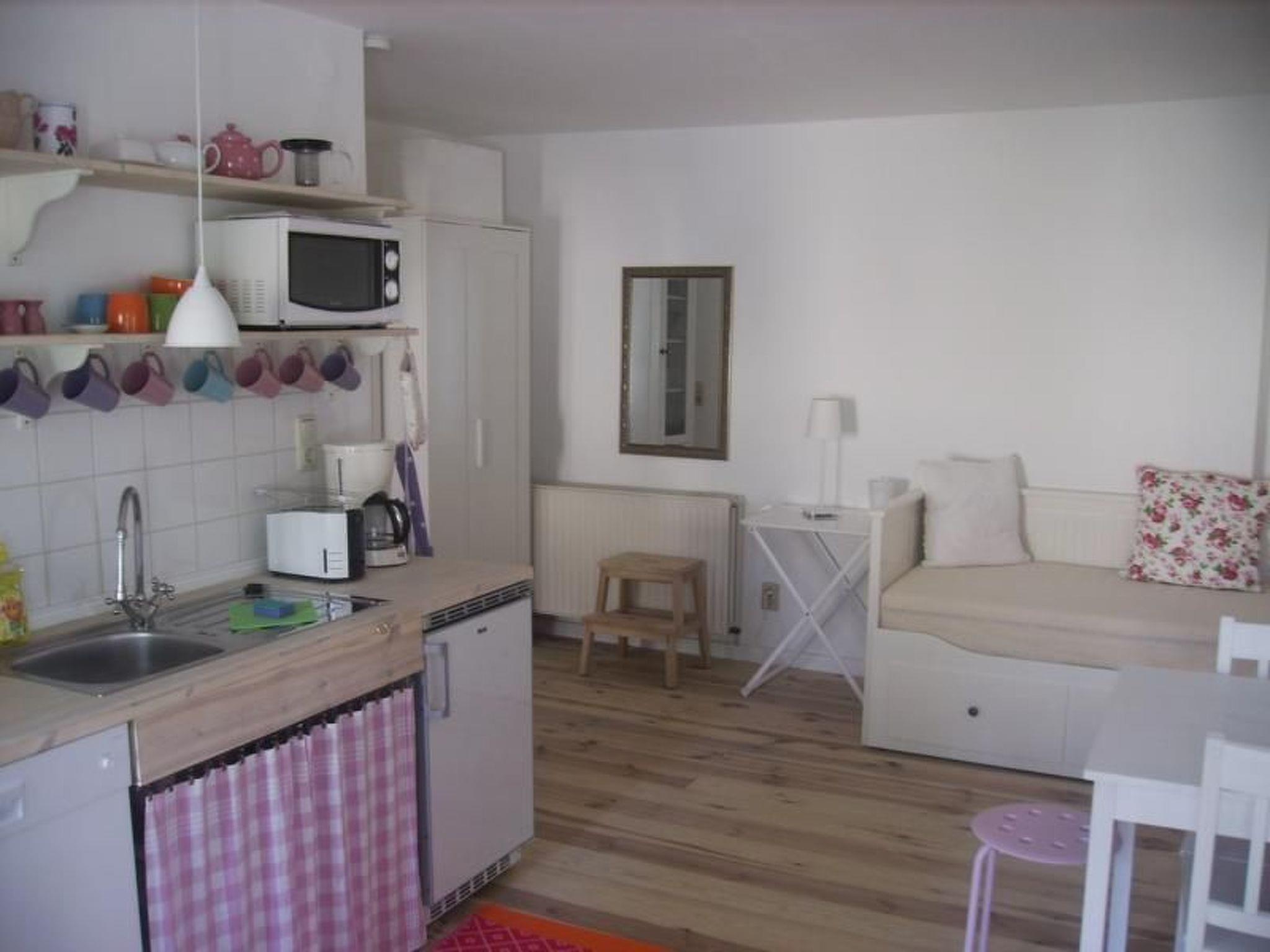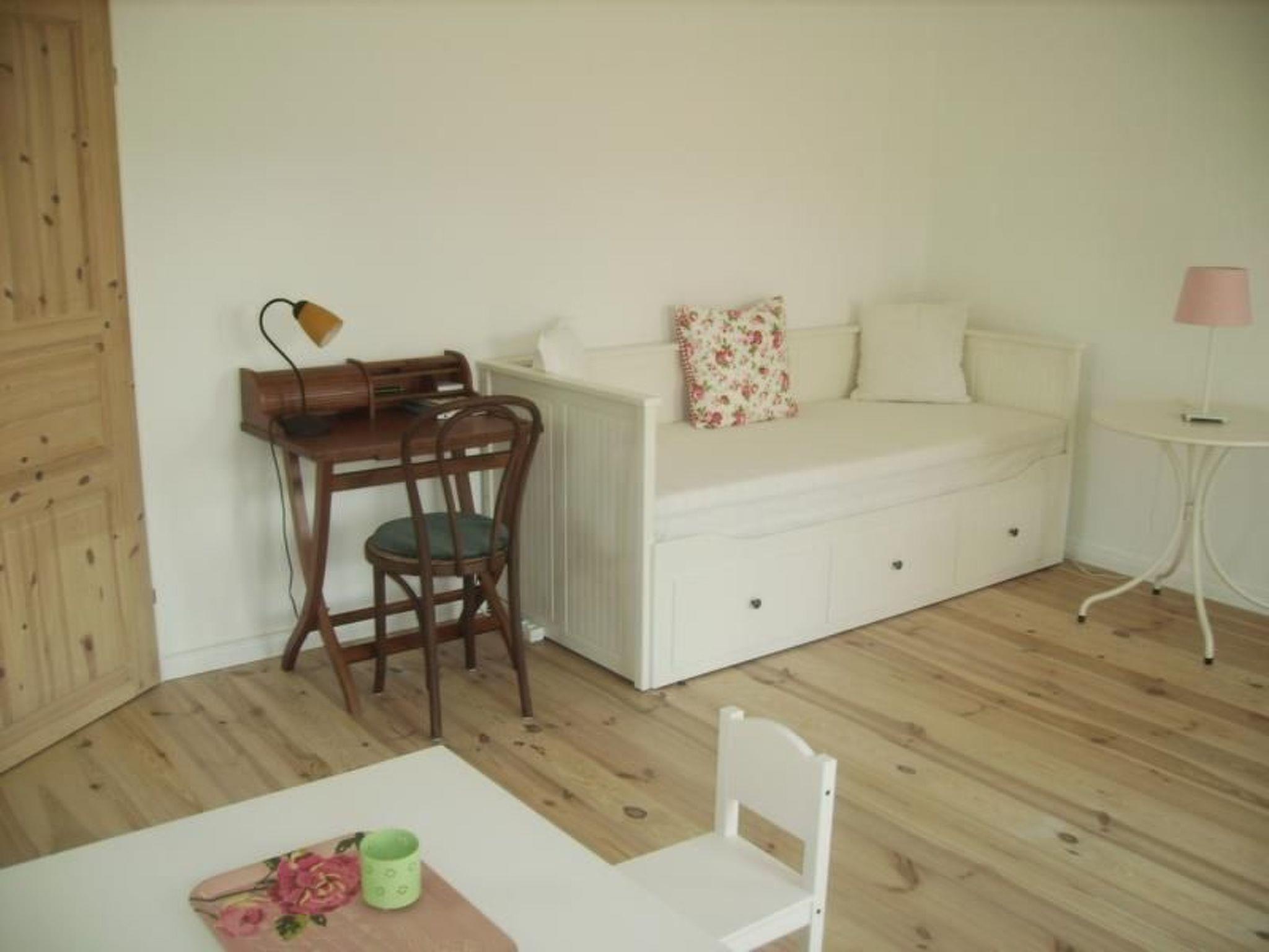 The 48m² studio on one floor has its own entrance and is designed in a modern country house style and is fitted with pine wood flooring. It has a light living and sleeping room with a quality double sofa bed, a kitchen-diner with a double sofa bed, a very well-equipped kitchen unit with a dishwasher and a bathroom with a shower, providing an atmospheric holiday home for up to four people. Satellite TV and wireless Internet access are available.