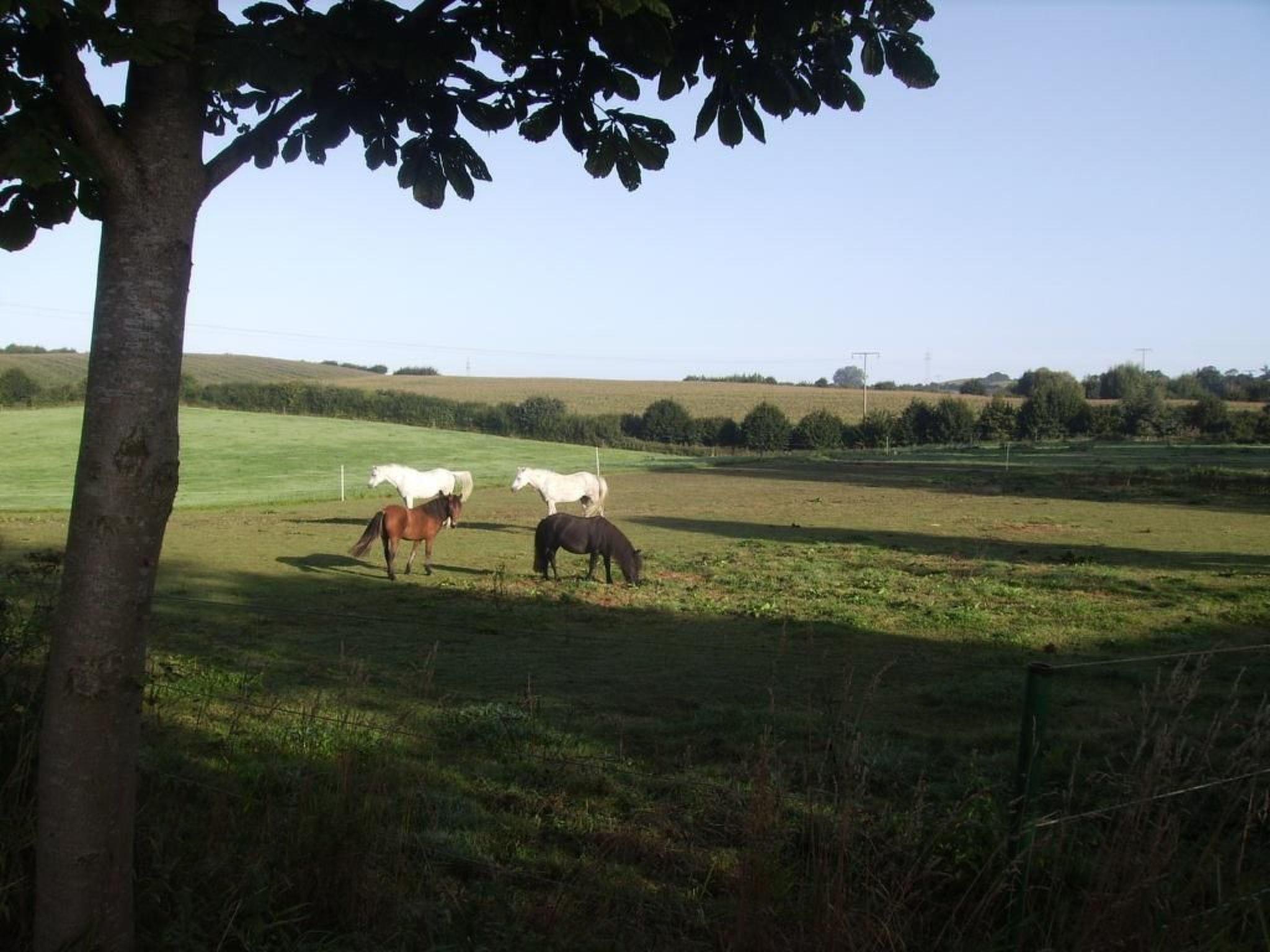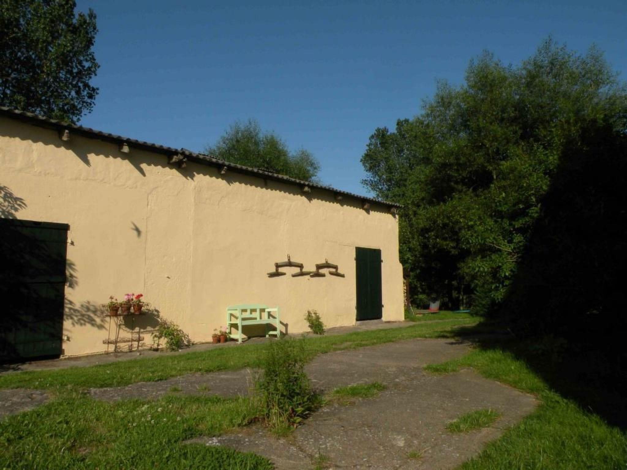 The owners also welcome guests with horses, as stables and paddocks are available. The owners have a pony that children can ride on or be guided on. There are three other horses for riding or riding lessons. The site is fenced towards the track and bordered by a stream towards the landscape.