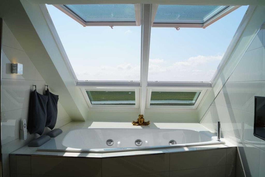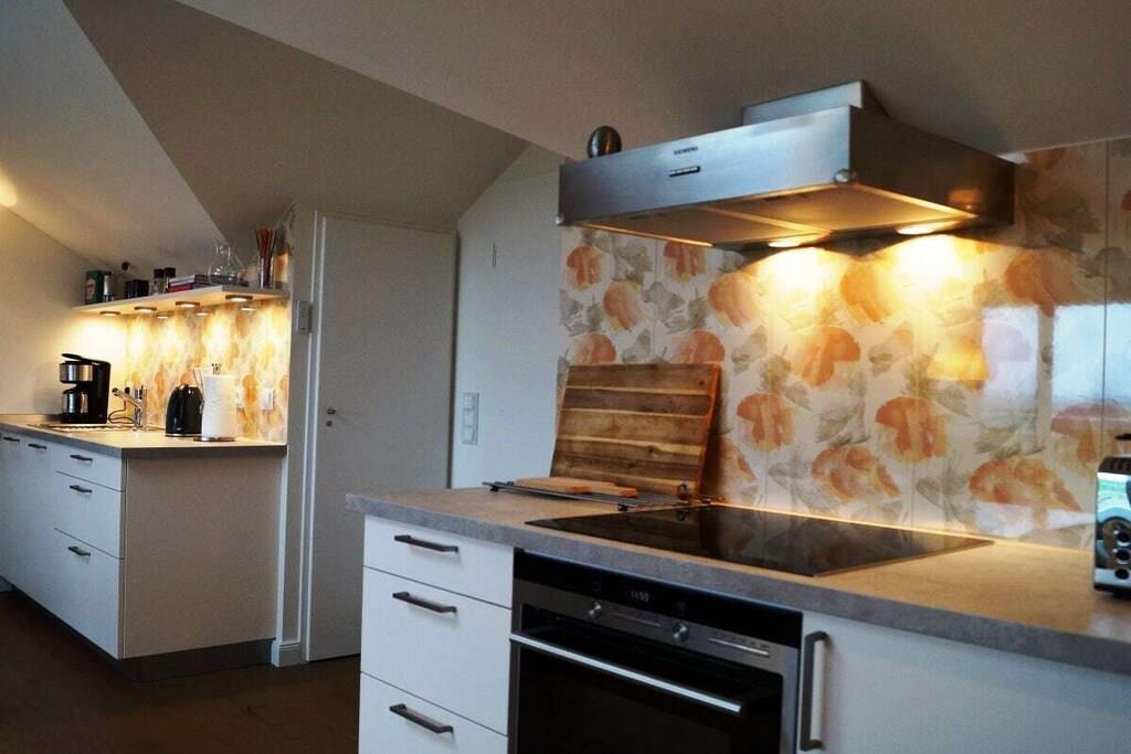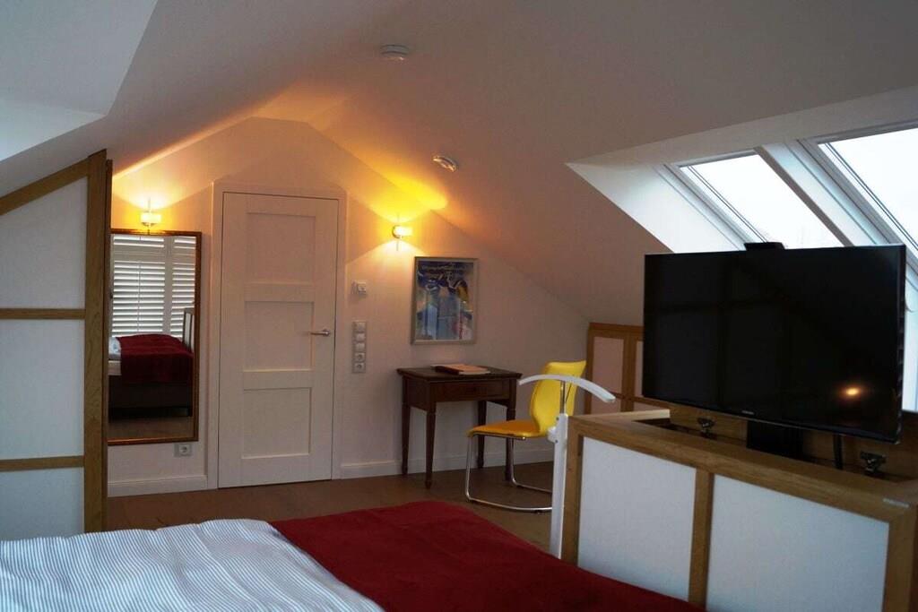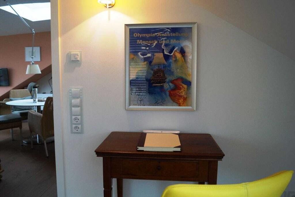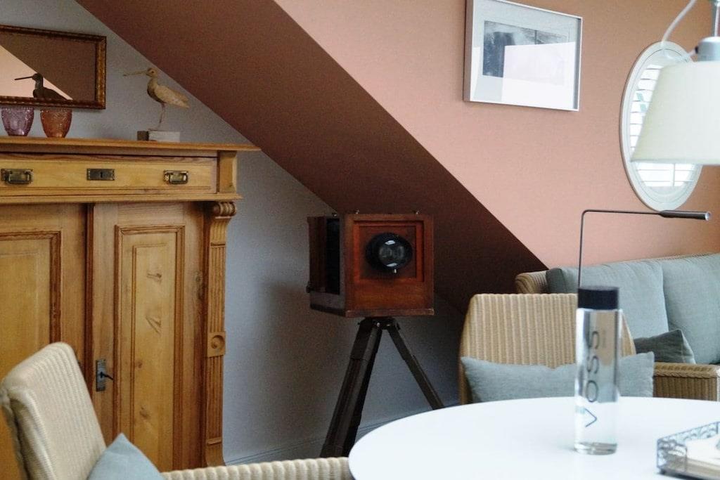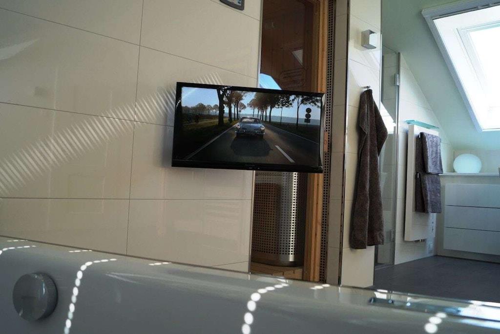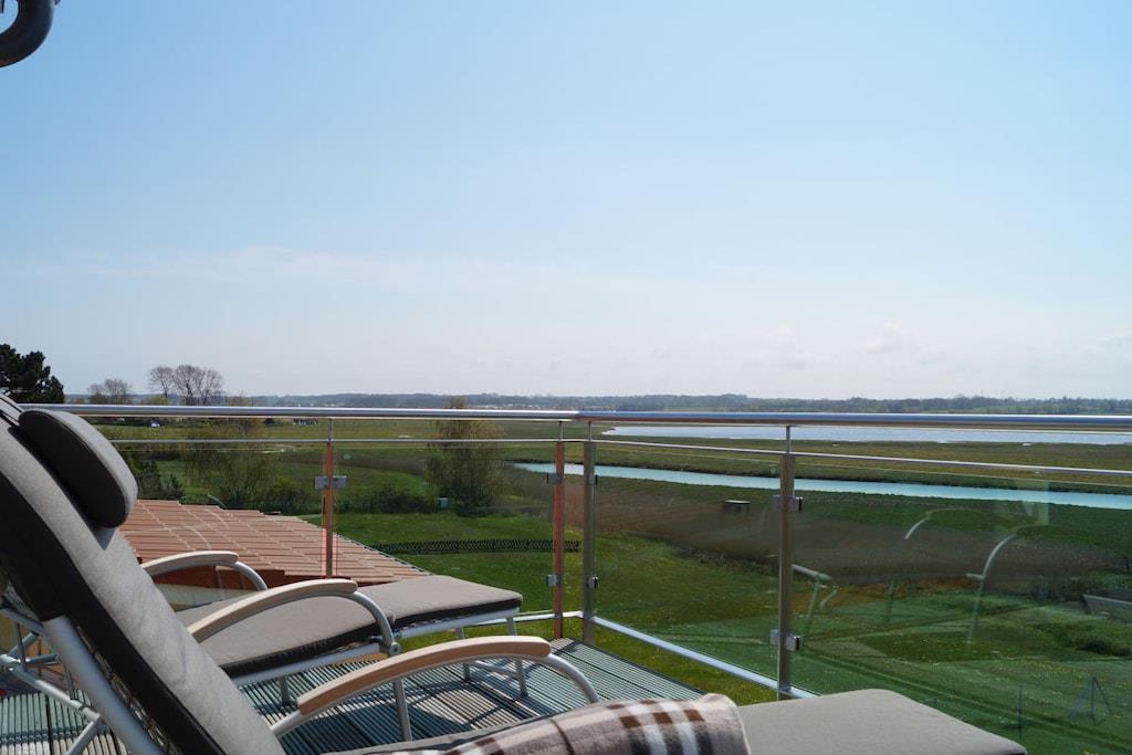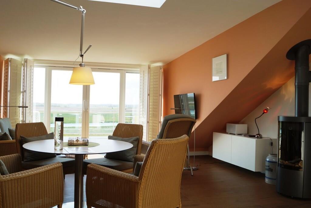 Alle forbrugsbaserede forsyninger samt sengelinned og håndklæder er inkluderet. Denne eksklusive studiolejlighed tilbyder rummelig opholdsplads til to personer på 80 m². Kombinationen af moderne teknologi og stilfulde møbler, materialer af høj kvalitet og antikviteter, lader intet tilbage at ønske. I stuen/spisestuen finder du en gaspejs, der kan styres med et tryk på en knap, et fladskærms-tv og et Geneva-lydsystem, der opretter forbindelse til din smartphone, tablet eller bærbare computer via Bluetooth. Du kan også få adgang til et lille udvalg af litteratur i minibiblioteket. Wi-Fi er også tilgængeligt. Køkkenet er udstyret med komfur, ovn, mikrobølgeovn, køleskab, opvaskemaskine, blender, brødrister og kaffemaskine. Ellers er alt køkkenudstyr til rådighed, så du kan forkæle dig selv med dine egne kreationer. Fra den store tagterrasse kan du opleve vandfuglenes hvilesteder ufiltreret. Udover en 2,0 m x 2,20 m vandseng (gel) har soveværelset et fladskærms-tv, der kan hæves fra kommoden for enden af sengen med en fjernbetjening. Et panoramavindue over sengen sikrer, at du ikke går glip af stjernehimlen. Den østvendte balkon, der er tilgængelig fra soveværelset, giver dig mulighed for at nyde morgenmaden med udsigt over Østersøen. Alle vinduer kan skygges med amerikanske skodder eller rullegardiner. Der er også insektnet i soveværelset. Der er et pengeskab, der er stort nok til en bærbar computer. På badeværelset behøver du ikke at gå glip af den vidtstrakte udsigt eller din yndlingsfilm. Du kan nyde begge dele fra spabadet. Eller du kan streame din yndlingsmusik direkte ind i spabadet fra din smartphone, tablet eller bærbare computer. Et udvalg af udvalgte badeprodukter er tilgængeligt. Efter en lang gåtur på stranden vil du glæde dig til din private sauna, eller for dem, der foretrækker mindre intense temperaturer, varmekabinen. Oplevelsen afrundes af den store Wellness RainDance-bruser. Badeværelset har også bruser/toilet. Der er også en vaskemaskine/tørretumbler placeret på badeværelset. Du kan parkere din bil lige foran hoveddøren. Der er et aflåseligt cykelopbevaringsrum. Håndklæder, badehåndklæder, saunahåndklæder og ekstra stort sengelinned er selvfølgelig inkluderet.