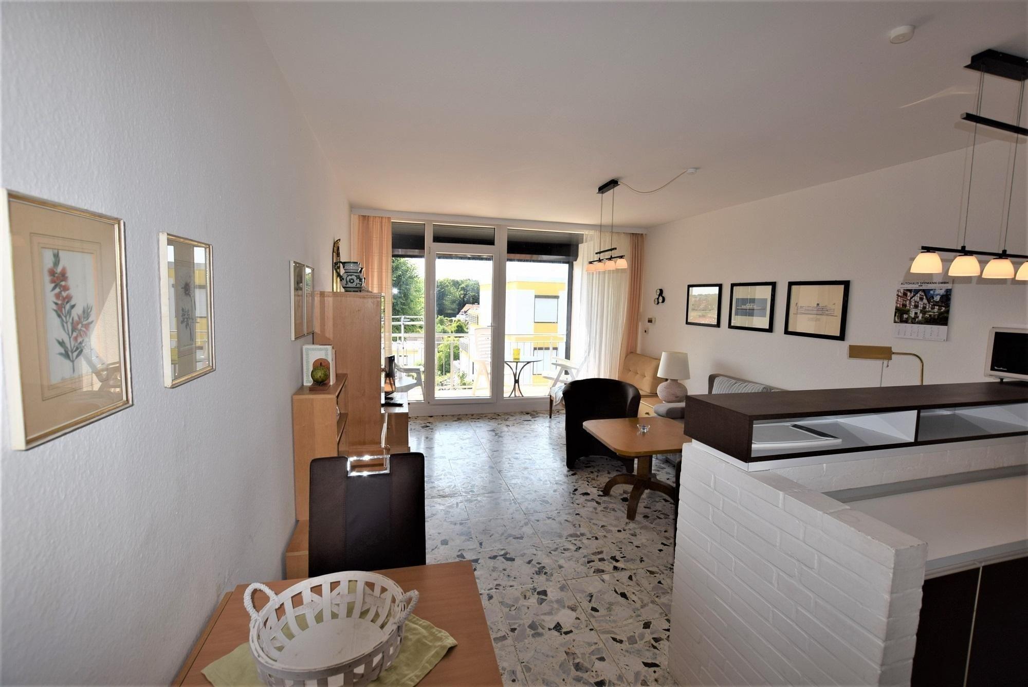 Die Ferienwohnung bietet Platz für 2 bis maximal 4 Personen, davon können 2 auf einer Schlafcouch im Wohn-Esszimmer untergebracht werden. Das lichtdurchflutete Wohn-Esszimmer ist mit einer gemütlichen Couchecke, einem Esstisch und Kabel-TV ausgestattet. Das separate Schlafzimmer verfügt über ein Doppelbett und einen Kleiderschrank. Die offene Küche ist mit einem Elektroherd, einem Backofen, einer Mikrowelle, einer Kaffeemaschine, einem Kühlschrank mit Gefrierfach, einem Wasserkocher und einem Toaster ausgestattet. Das Badezimmer umfasst eine Dusche und ein WC. Ein Wäschepaket ist gegen Gebühr erhältlich. Die Wohnung ist für Nichtraucher geeignet und Hunde sind willkommen. Die Winterpause erstreckt sich vom 20. Oktober bis 01. März.