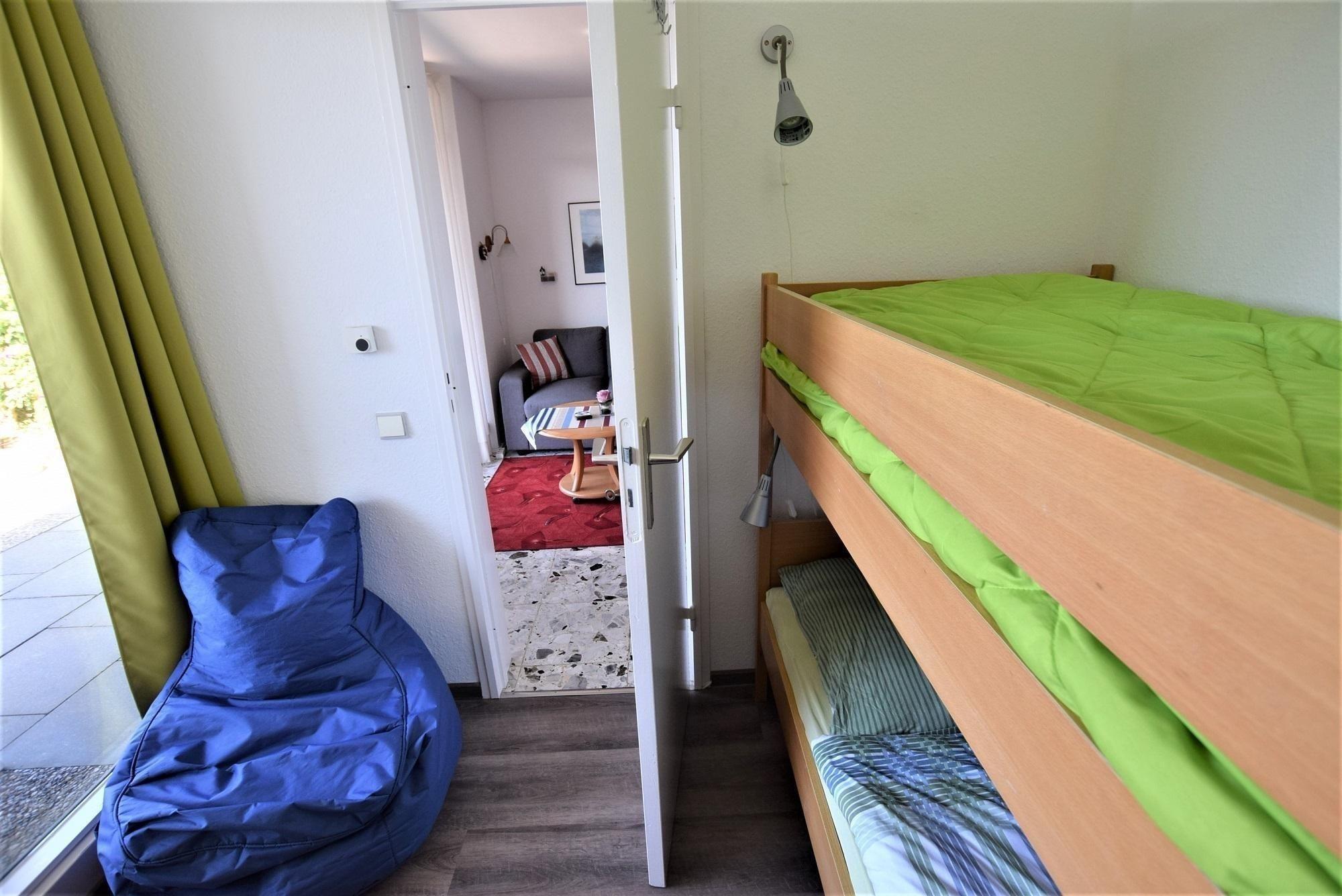 Der gemütlich eingerichtete Nichtraucher-Bungalow "Sonnenkliff" bietet Platz für bis zu 4 Personen, davon maximal 2 Erwachsene. Der Bungalow erstreckt sich über ca. 52 qm und umfasst einen einladenden Wohnraum mit Sitz- und Essecke, ein Elternschlafzimmer mit Außenrolladen sowie ein Kinderschlafzimmer mit 2 Einzelbetten. Die Ausstattung beinhaltet WLAN, Kabel-TV, Radio sowie eine komplett ausgestattete Einbauküche mit Herd, Backofen, Geschirrspüler und Kühlschrank. Ein modernes WC/Wannenbad mit Duschvorrichtung sorgt für zusätzlichen Komfort. Zur weiteren Ausstattung zählt die elektrische Fußbodenheizung. Ein Wäschepaket kann gegen Gebühr hinzugebucht werden. Ein Parkplatz steht zur Verfügung. Der Bungalow ist ganzjährig vermietbar und befindet sich in der Nähe der Steilküste, nur unweit vom Strand entfernt.