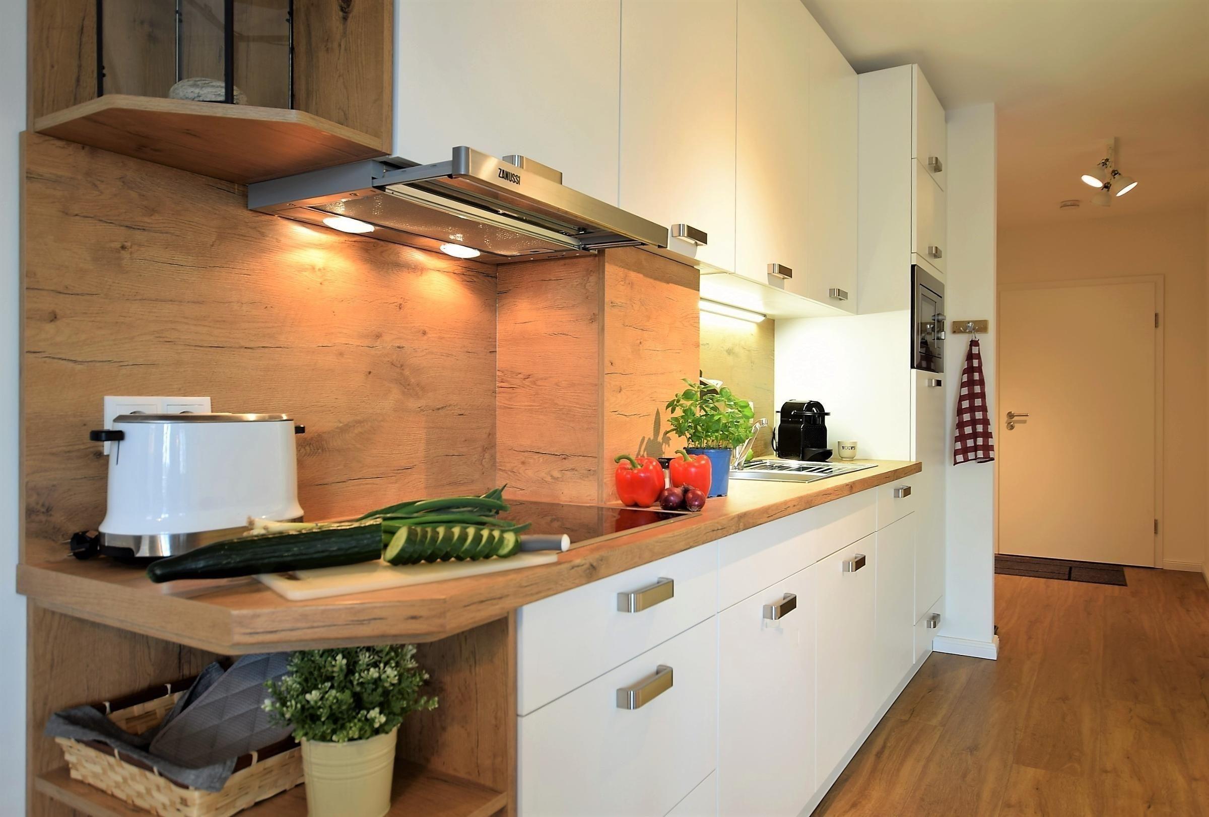 In dieser einladenden Ferienwohnung erwartet die Gäste ein durchdachtes Raumkonzept und moderne Ausstattung. Die beiden Schlafzimmer sind mit einem Doppelbett und zwei Einzelbetten ausgestattet, während eine Schlafcouch im Wohnschlafzimmer zusätzlichen Platz bietet. Die offene Küche ist ideal für gesellige Kochabende und verfügt über einen Geschirrspüler, Elektro-/Gasherd, Mikrowelle, Kühlschrank, Kaffeemaschine, Toaster und eine Küchenmaschine. Ein Starterset an Gewürzen ergänzt die Küchenausstattung. Das Badezimmer mit Fenster bietet eine Dusche, Haartrockner und Fußbodenheizung. Für Unterhaltung sorgen eine HiFi-Anlage und ein Fernseher. WLAN steht kostenlos zur Verfügung. Allergikerfreundliche Ausstattung und ein Parkplatz runden das Angebot ab. Mit einer Waschmaschine, Reinigungsmitteln und einem Wäscheständer sind die Gäste optimal versorgt. Brettspiele und ein Sonnenschirm bieten zusätzliche Freizeitmöglichkeiten. Fliegengitter sorgen für angenehme Lüftung ohne Insekten. Hier ist Wohlfühlen garantiert.