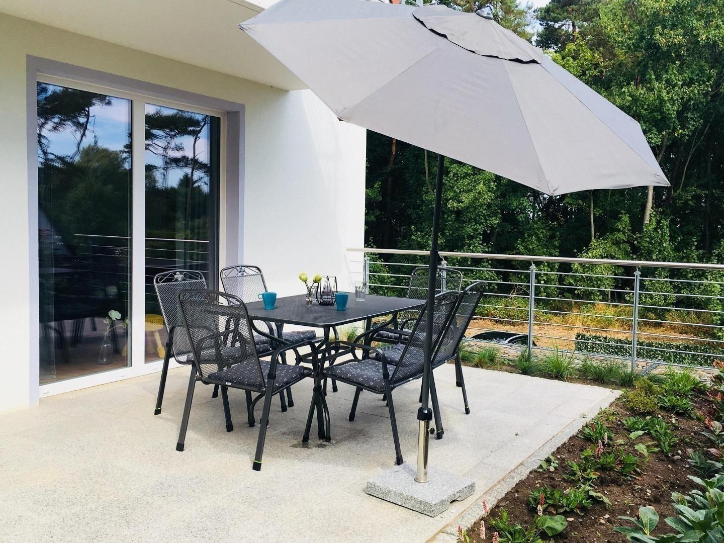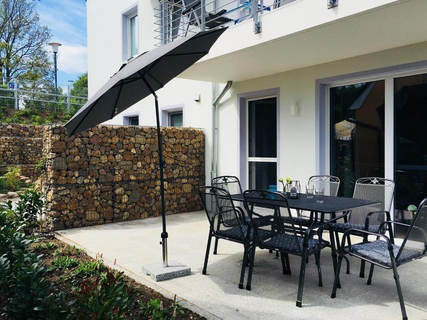 Die Ferienwohnung bietet einen eigenen, privaten Garten, der zum Entspannen und Verweilen einlädt. Die Terrasse ergänzt das Gesamtbild und schafft einen einladenden Außenbereich, ideal für gesellige Abende oder ruhige Momente im Freien. Hier kann man die Natur genießen und den Alltag hinter sich lassen.