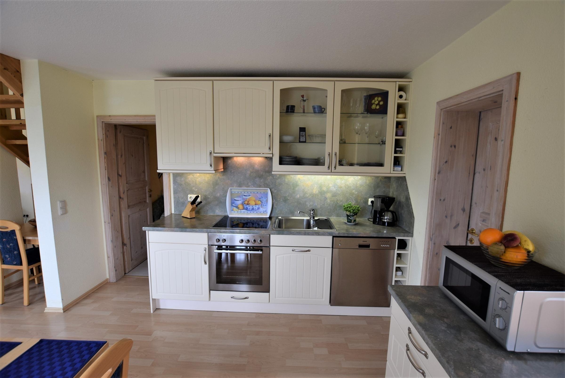 Das komfortable Ferienhaus in Hohwacht bietet Platz für bis zu fünf Personen und überzeugt mit einem durchdachten Raumkonzept auf etwa 90 Quadratmetern. Der offene Wohn- und Essbereich mit Couchecke, Kamin und Essplatz schafft eine einladende Atmosphäre. Die moderne Küche ist voll ausgestattet mit Ceran-Herd, Backofen, Mikrowelle, Kühlschrank mit Gefrierfach und Spülmaschine.
