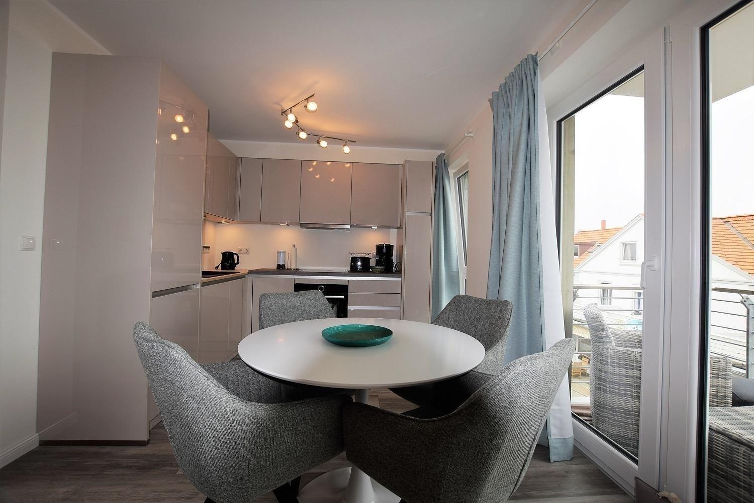 Die Ferienwohnung „Jakobsmuschel“ bietet modernen Komfort für bis zu vier Gäste, direkt am Strand gelegen mit Meerblick, Balkon, WLAN und nahegelegenen Freizeitmöglichkeiten – ideal für einen entspannenden Urlaub am Meer.