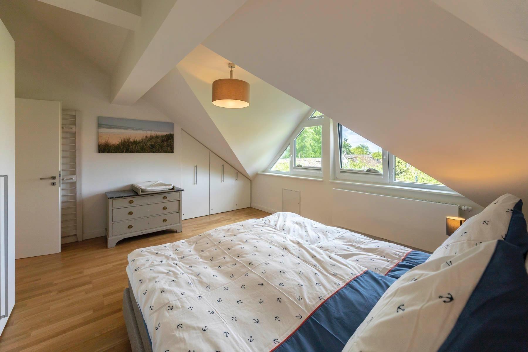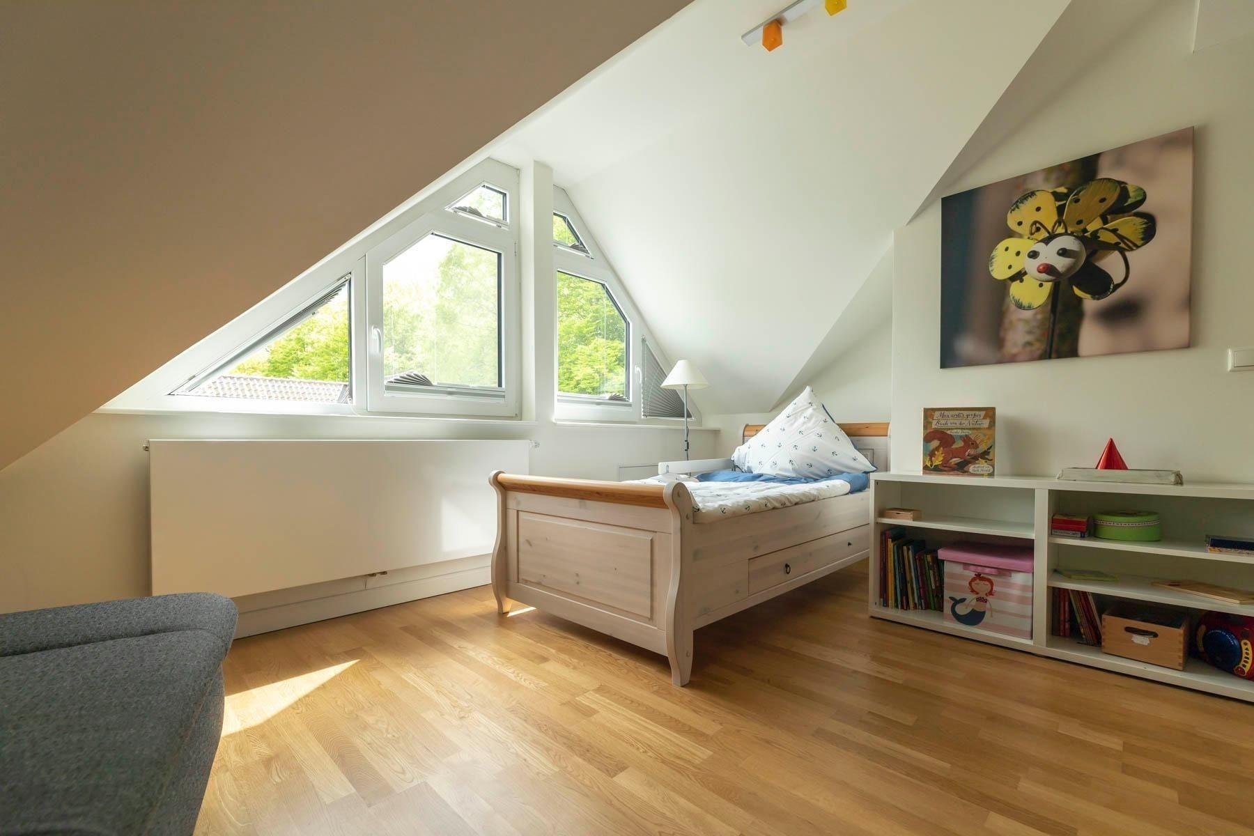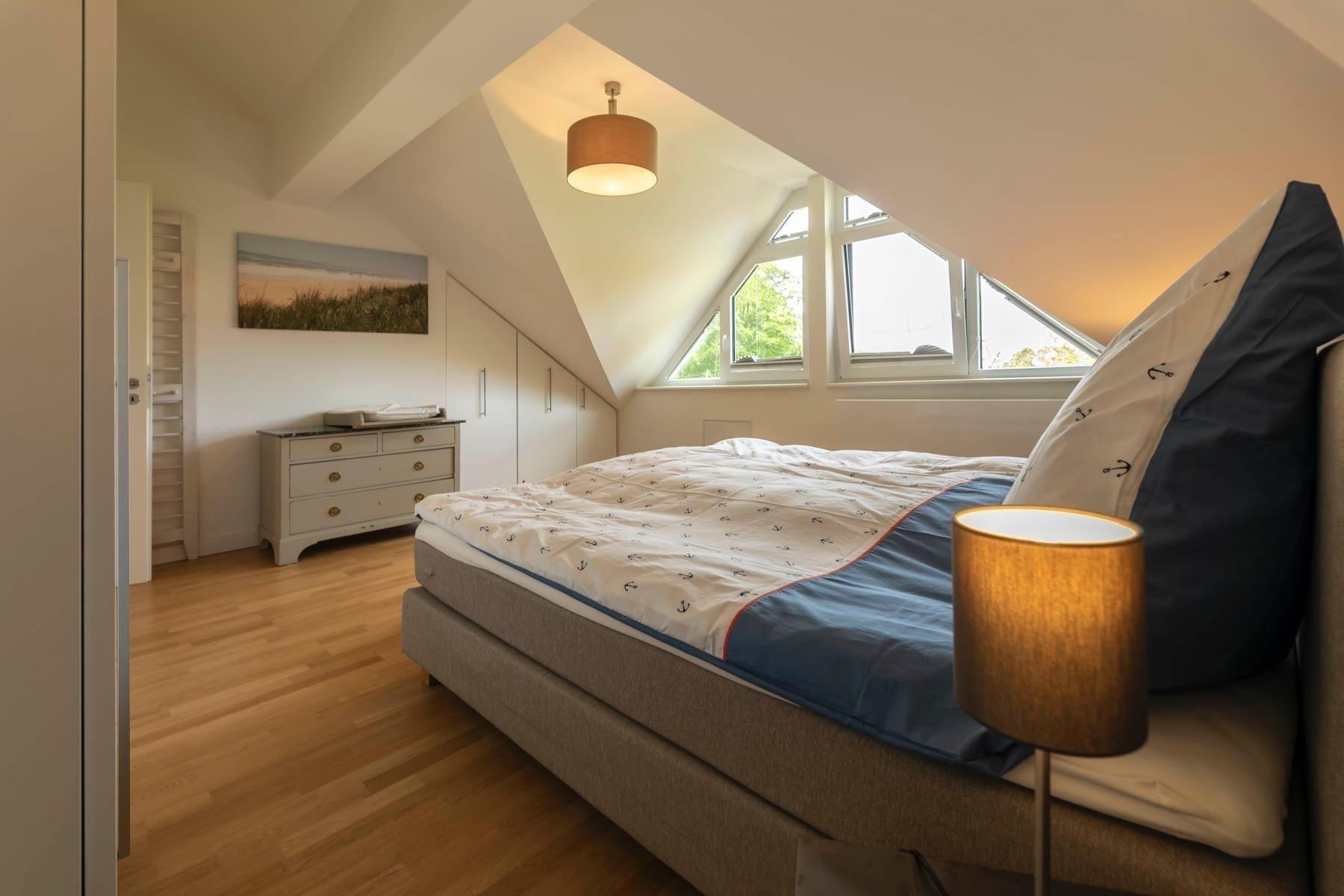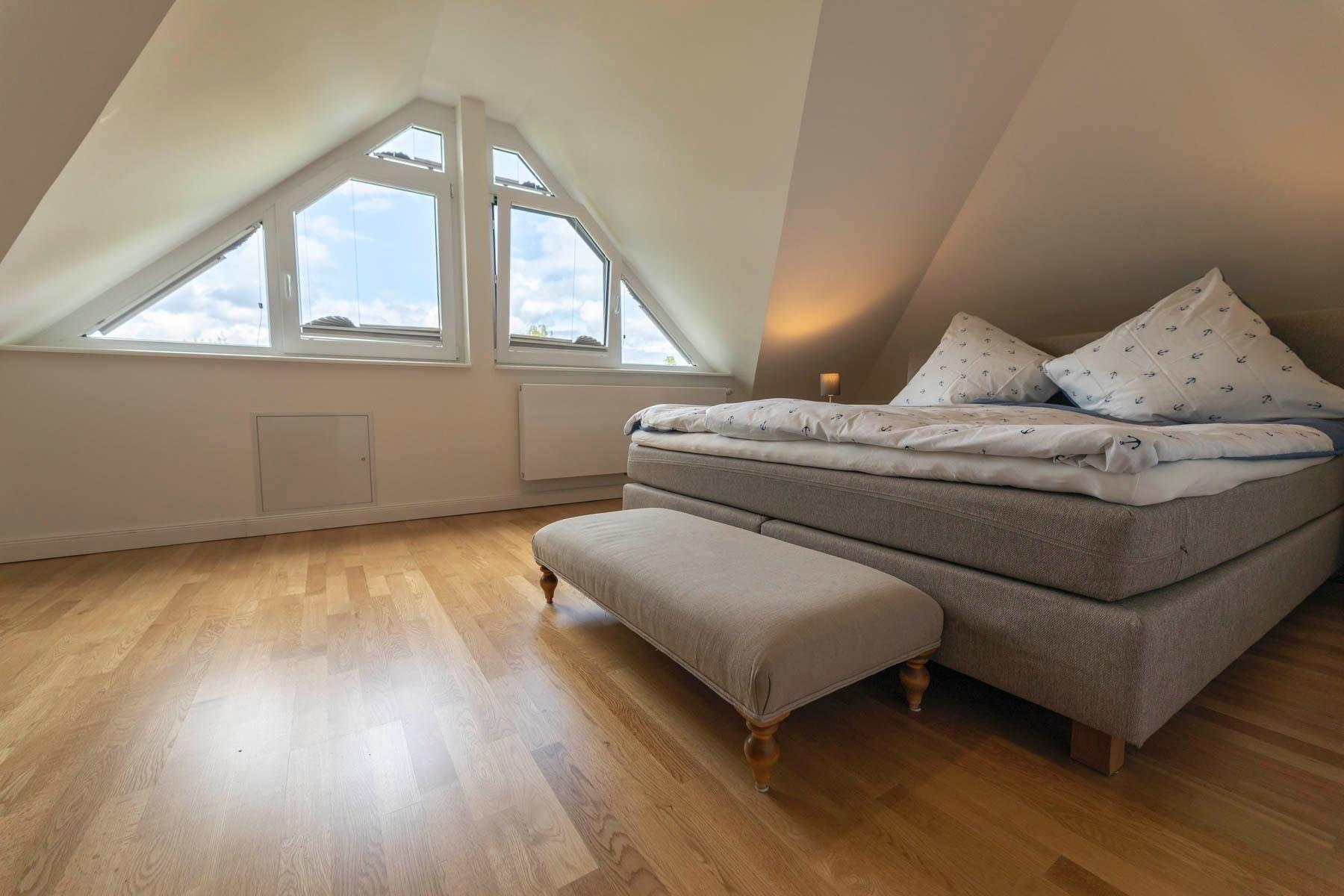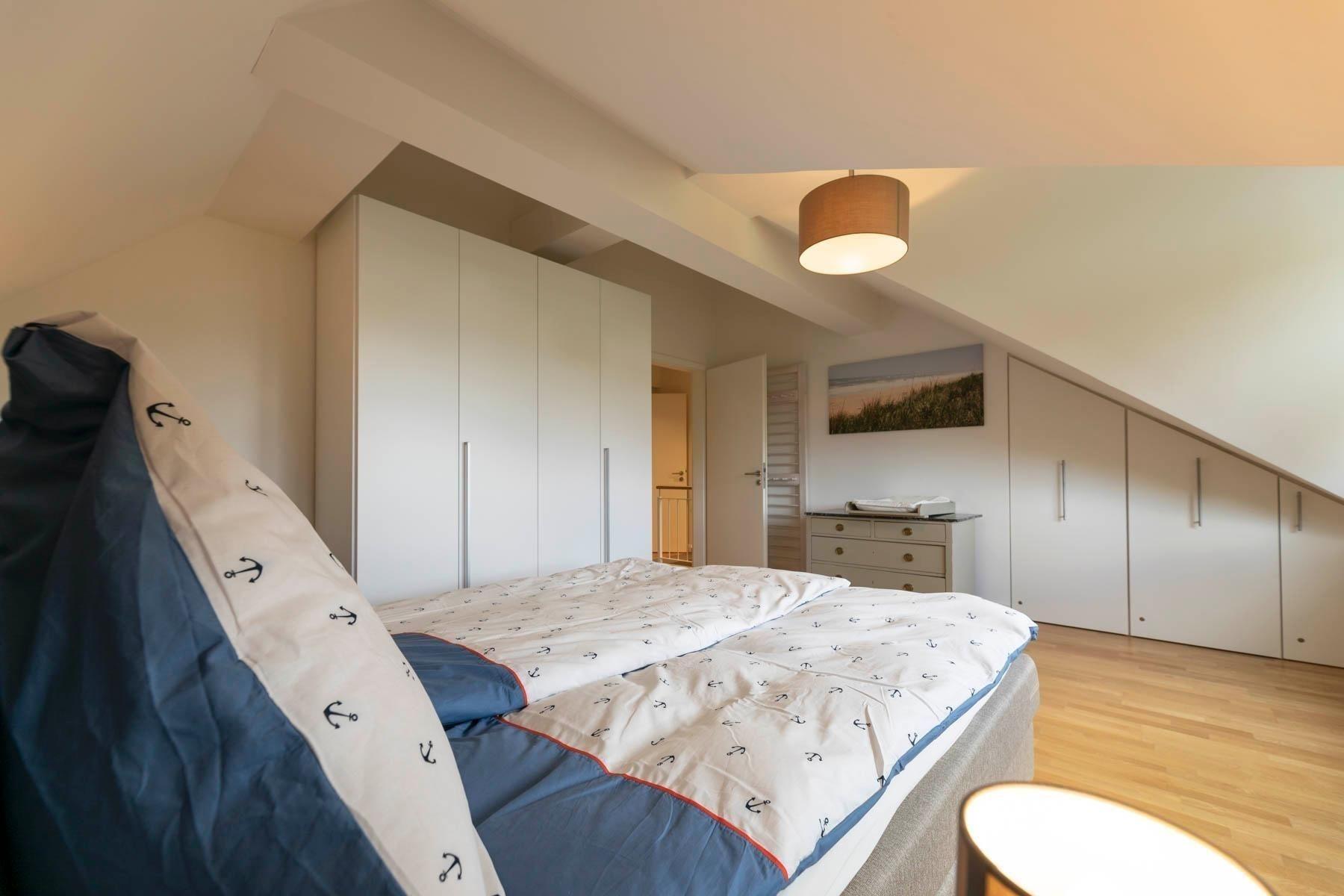 Die Traumwohnung Strandkrabbe bietet auf 100 m², verteilt auf zwei Ebenen (1. Obergeschoss und Dachgeschoss), Platz für 2 bis 6 Personen. Die hochwertig ausgestatteten Räume überzeugen durch Parkett- und Fliesenböden. Das Wohnzimmer verfügt über einen TV mit Netflix und einen integrierten Essbereich sowie eine Einbauküche. Die Küche ist mit einem Geschirrspüler, Induktionsherd, Dunstabzugshaube, Backofen, Kühlschrank mit Gefrierfach, Kaffeemaschine, Toaster und Wasserkocher ausgestattet. Es stehen zwei Duschbäder mit WC zur Verfügung, die in den oberen Etagen liegen. Die Schlafzimmer bieten komfortable Doppelbetten (Boxspring) und Stauraum. Für Familien gibt es ein zusätzliches Zimmer mit Einzelbett, Schlafcouch und Spielecke. WLAN ist ebenfalls vorhanden. Bettwäsche und Handtücher können auf Wunsch gegen Gebühr bereitgestellt werden.