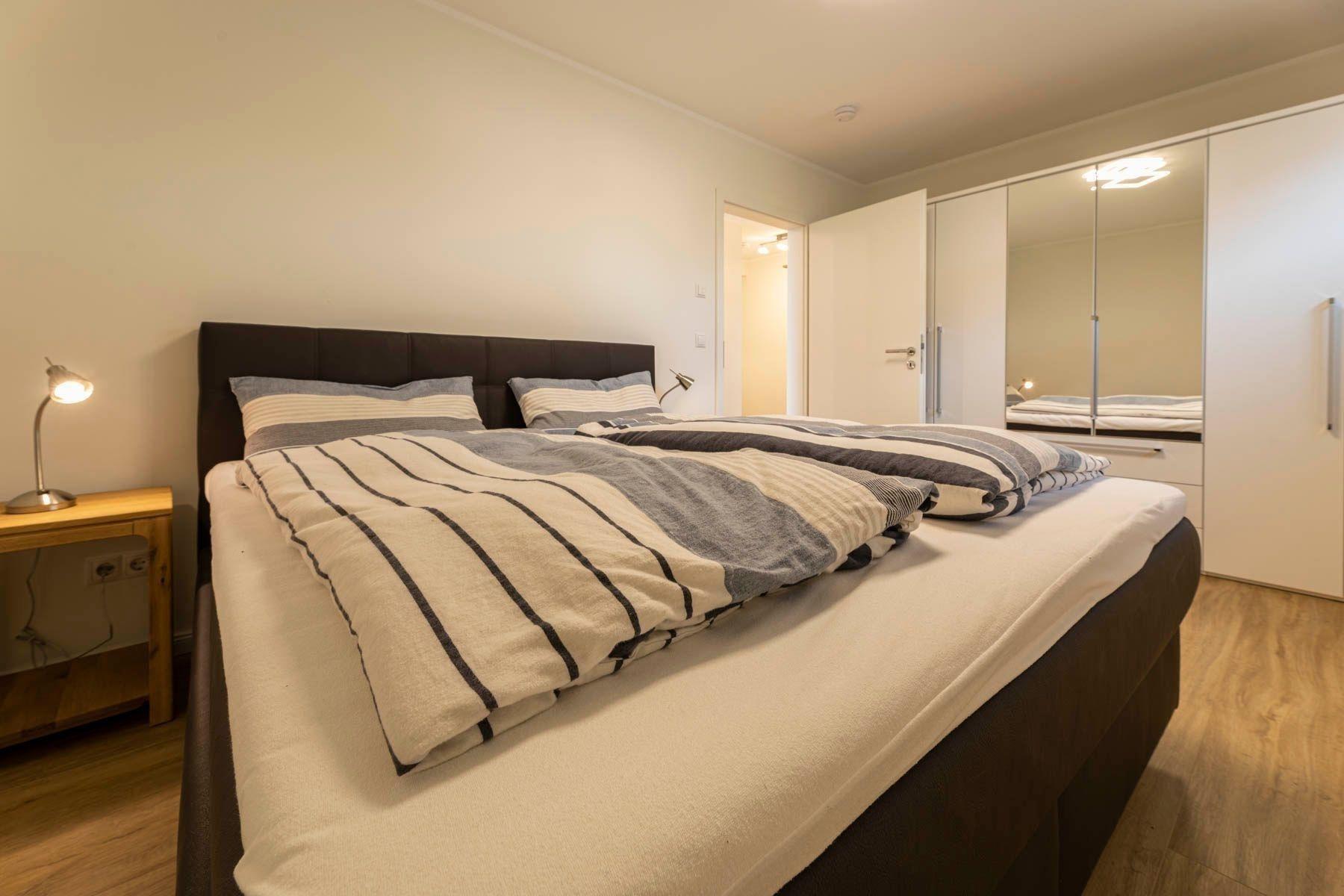 Die Ferienwohnung „Morgensonne“ im Haus 3 bietet modernen Komfort auf 73 m² und ist für 4 bis 6 Personen geeignet. Zwei helle Schlafzimmer sind mit Doppelbetten und geräumigen Kleiderschränken ausgestattet. Das weitläufige Wohnzimmer besticht durch große Fenster und direkten Zugang zur nach Osten ausgerichteten Terrasse, die mit Tisch und Stühlen möbliert ist. Ein gemütlicher Wohnbereich mit Sofa kann bei Bedarf in eine Schlafmöglichkeit für zwei weitere Gäste umgewandelt werden. Die offene Küche verfügt über hochwertige Geräte, darunter einen Geschirrspüler, Ceran-Herd mit Backofen und Mikrowelle. Das moderne Vollbad bietet Dusche, Waschtisch und WC. Ein Hauswirtschaftsraum mit Waschmaschine und kostenfreies WLAN runden das Angebot ab. Ein Stellplatz für 1 PKW sowie zwei Fahrradabstellplätze im Nebenhaus sind vorhanden.
