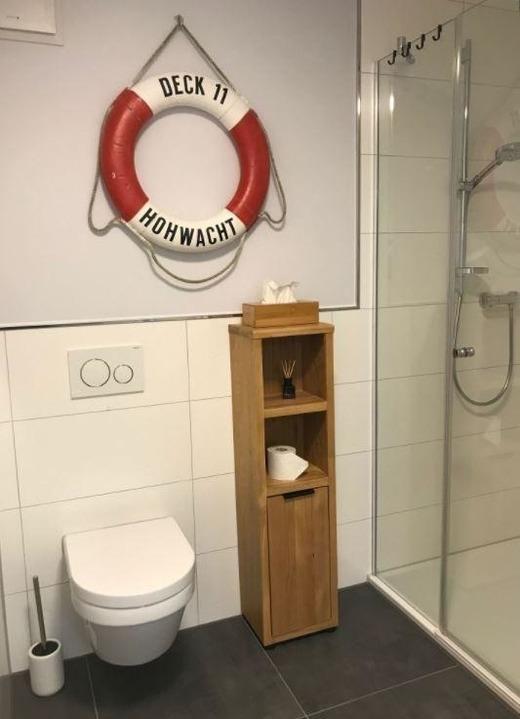 Die Ferienwohnung „DECK 11“ bietet eine stilvolle, skandinavisch-maritime Einrichtung auf ca. 60 Quadratmetern. Sie verfügt über einen großzügigen Wohn-/Essraum, ein Duschbad sowie zwei Schlafzimmer – eines mit Doppelbett und das andere mit einem Etagenbett, ideal für 2-4 Gäste. Alle Zimmer sind mit einem Flat-TV ausgestattet, und WLAN ist kostenfrei verfügbar. Die Küche ist voll ausgestattet mit modernen Geräten, einschließlich eines Geschirrspülers und Induktionskochfelds. Das geräumige Bad überzeugt mit einer großen Dusche und einem Handtuch-Heizkörper. Ein separater Hauswirtschaftsraum bietet zusätzlichen Stauraum und einen Waschtrockner. Die hochwertige Ausstattung ist umweltfreundlich und nachhaltig gestaltet, unter anderem mit Eichenparkett und energieeffizienten Elektrogeräten. Haustiere sind nicht erlaubt, die Wohnung eignet sich jedoch gut für Allergiker.