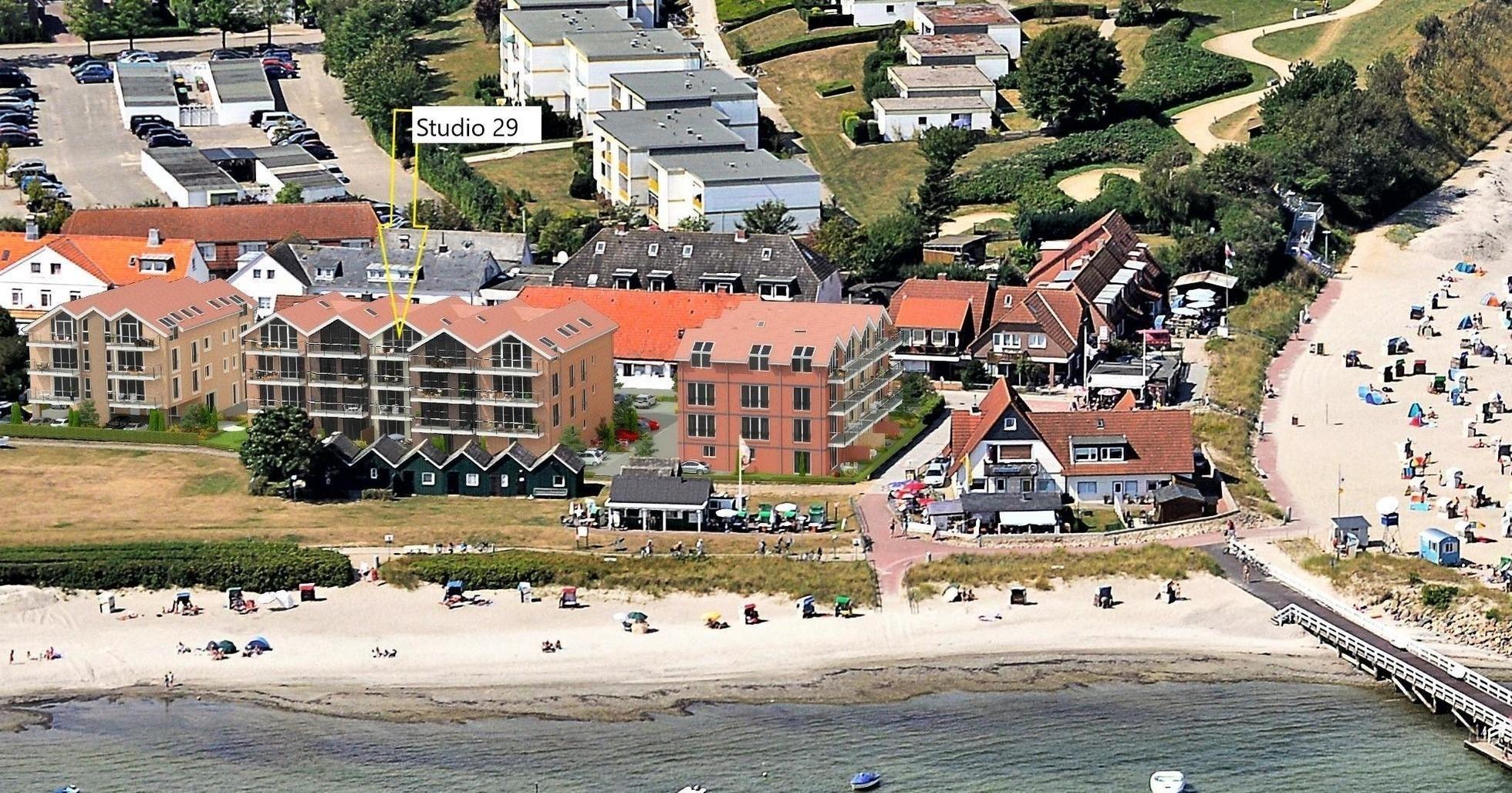 Die Ferienwohnung „Studio 29“ im Haus Meeresblick besticht durch ihre erstklassige Lage mit direktem Blick auf die Ostsee. Die Strandpromenade verläuft direkt vor dem Haus und lädt zu entspannten Spaziergängen ein, während der weiße Sandstrand von Hohwacht nur wenige Meter entfernt ist. Das Zentrum von Hohwacht, mit seinen vielfältigen Geschäften, Restaurants und Läden des täglichen Bedarfs, ist bequem zu Fuß erreichbar. Der nahegelegene Hundestrand befindet sich ebenfalls in kurzer Distanz. Für Golfliebhaber bietet der Golf- und Country Club Hohwachter Bucht, nur fünf Autominuten entfernt, ideale Bedingungen. Die Anreise zur Unterkunft gestaltet sich unkompliziert; ein PKW-Stellplatz sowie Fahrradstellplätze stehen zur Verfügung. Mit einem Lift ist die Wohnung bequem erreichbar.