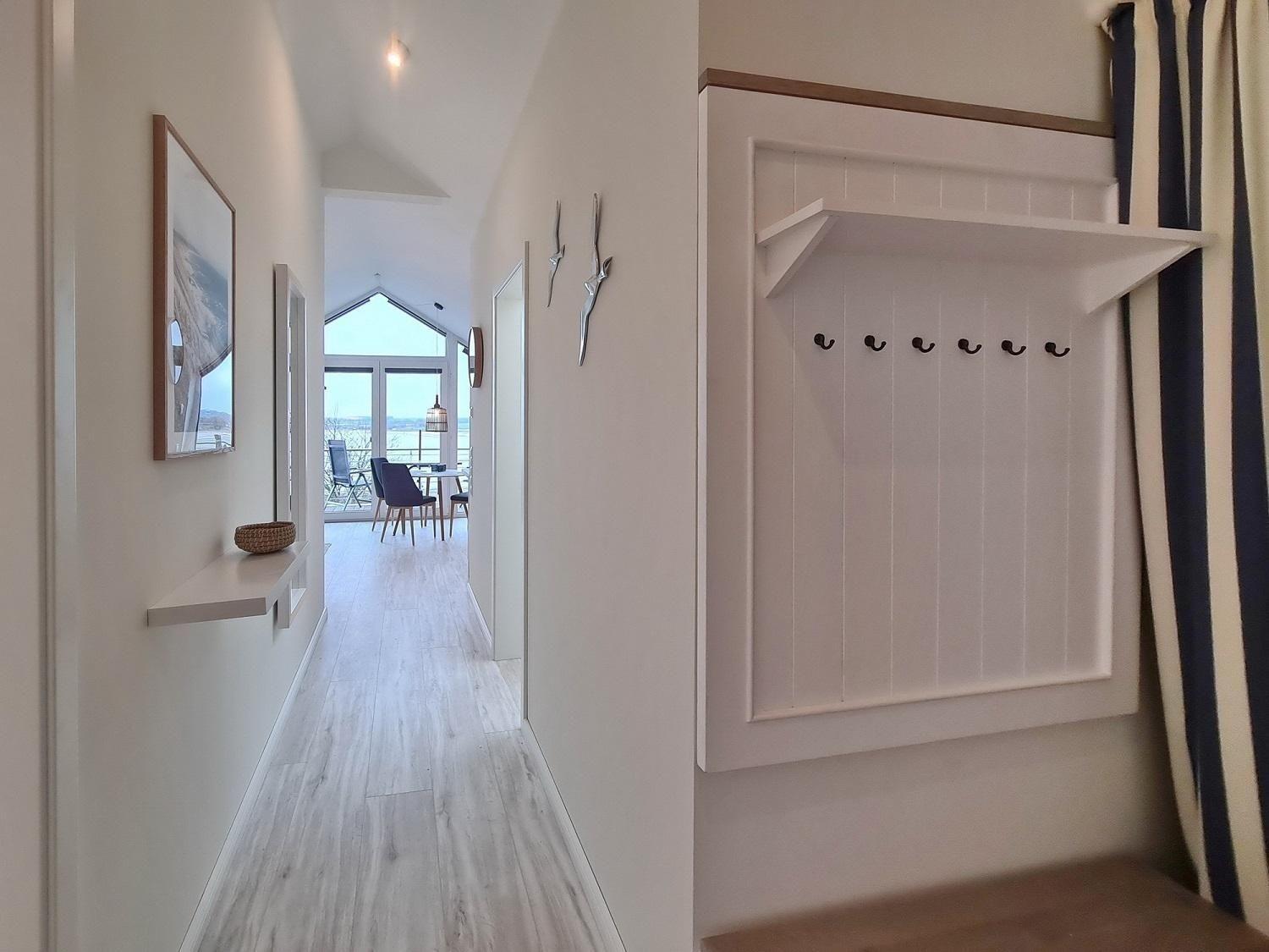 Die Ferienwohnung „Pier 28“ im 3. Obergeschoss des Hauses "Meeresblick" bietet modernen Komfort und einen herrlichen Meerblick. Der Wohn- und Essbereich ist geschmackvoll gestaltet und verfügt über große Glastüren, die auf den Balkon führen. Im Wohnbereich sorgt ein gemütliches Sofa mit Flachbildfernseher für entspannte Abende. Die voll ausgestattete Küche umfasst unter anderem einen Herd mit Induktionskochfeld, eine Geschirrspülmaschine und einen Kühlschrank mit Gefriermöglichkeit. Das Schlafzimmer ist mit einem komfortablen Boxspringbett (180x200) und einem Kleiderschrank optimal möbliert. Das moderne Bad bietet eine Dusche, ein Waschbecken mit Stauraum und einen beleuchteten Kosmetikspiegel. Ein Fahrstuhl im Haus sowie WLAN und ein sicherer Parkplatz runden das Angebot ab. Haustiere sind nicht erlaubt.