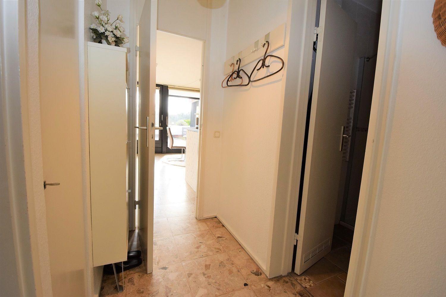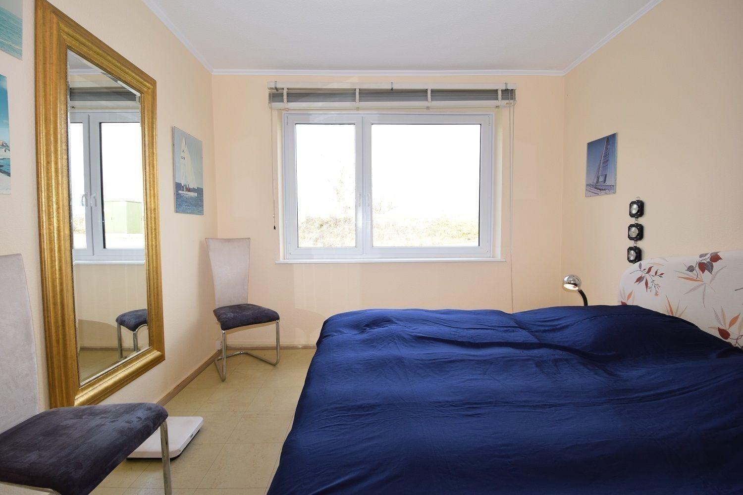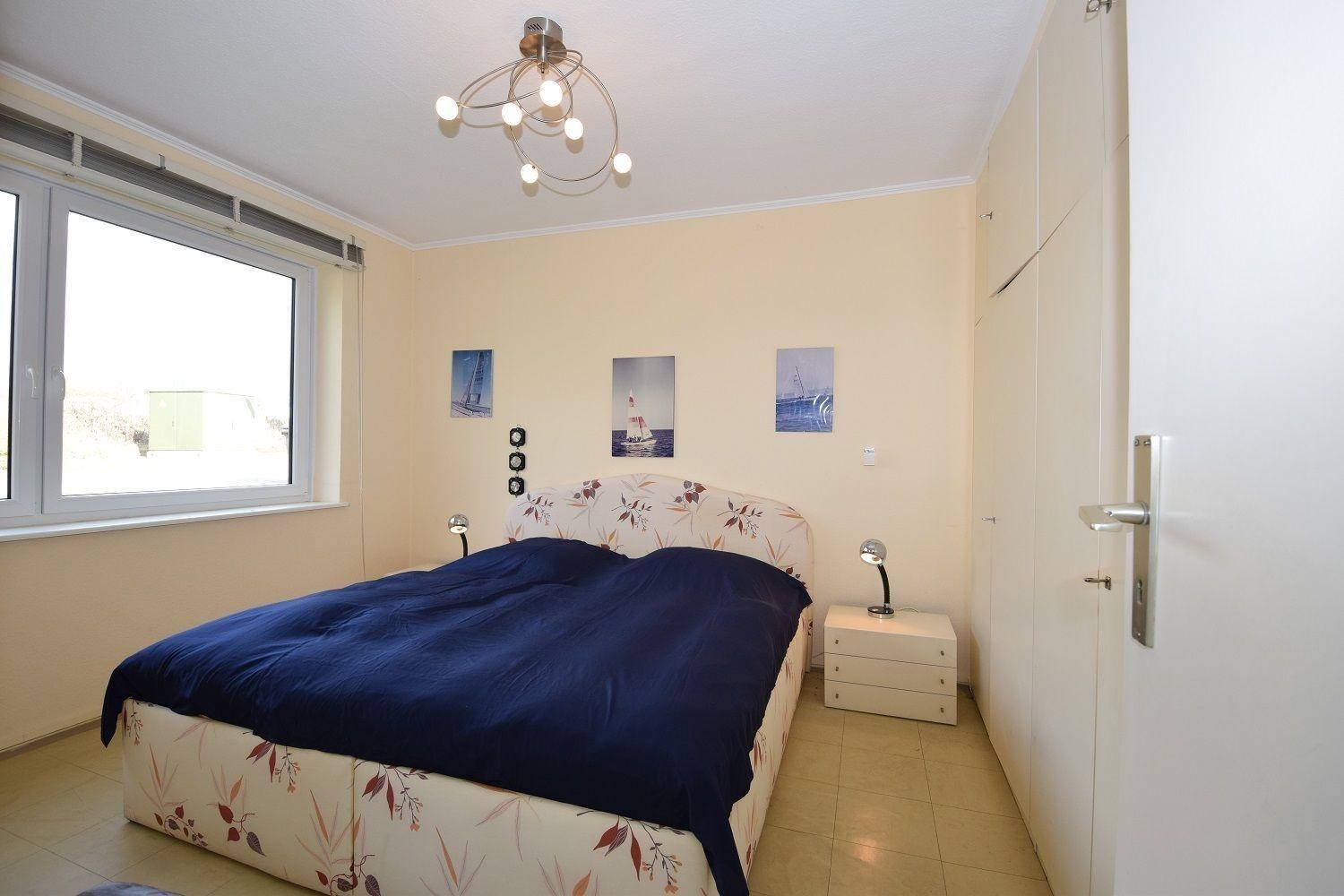 Zwei Schlafzimmer sorgen für erholsame Nächte: Ein Schlafzimmer mit einem komfortablen Doppelbett und ein weiteres mit zwei Einzelbetten. Das Badezimmer ist mit einer nahezu bodentiefen Dusche ausgestattet, die nach einem Tag an der Ostsee zur Entspannung einlädt.