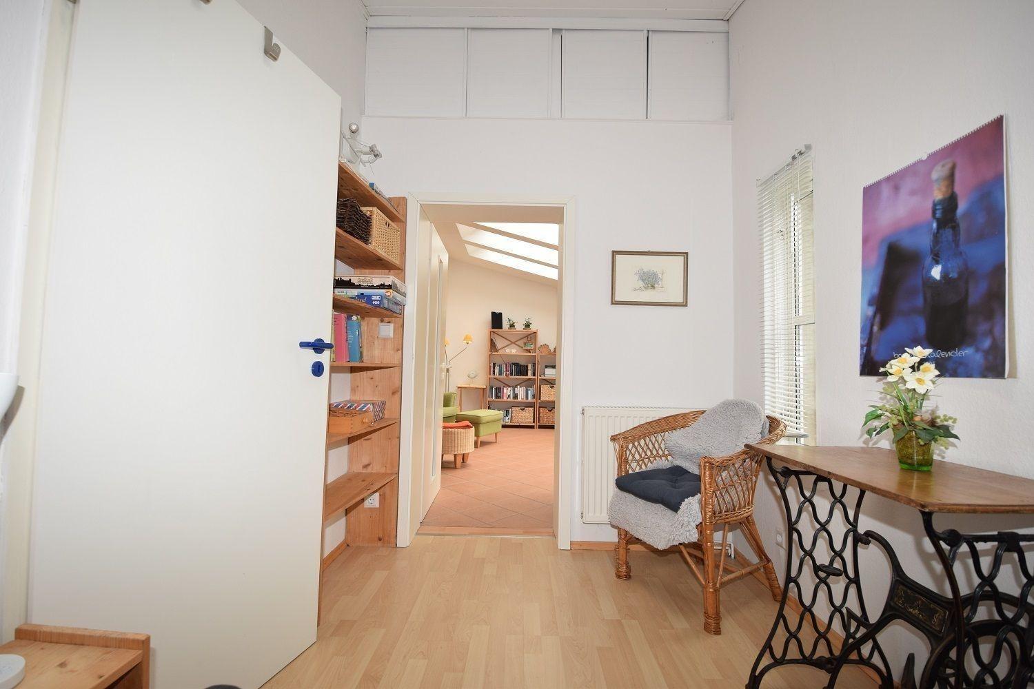 Die Ferienwohnung bietet einen eigenen Parkplatz und einen einladenden Außenbereich mit einem gemütlichen Strandkorb. Für grillliebende Gäste steht ein Holzkohlegrill bereit. Der Blick ins Grüne sorgt für Entspannung und Wohlbefinden. Diese harmonische Kombination aus Komfort und Natur macht die Wohnung zu einem idealen Rückzugsort für jeden Urlauber.