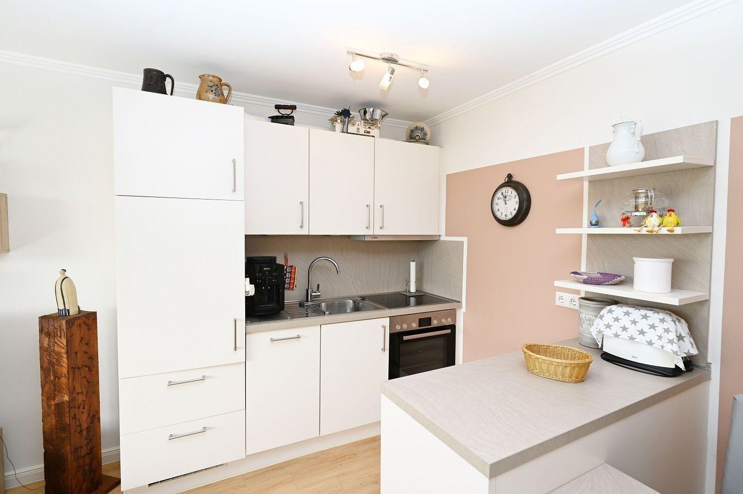 Die Ferienwohnung an der Hohwachter Bucht bietet einen offenen und lichtdurchfluteten Wohn- und Essbereich mit Zugang zur sonnigen Terrasse. Im gemütlichen Wohnzimmer laden ein bequemer Sessel, eine einladende Couch und ein TV zu entspannten Stunden ein. Die voll ausgestattete Küche ermöglicht kulinarische Freuden, ideal für Frühstück oder romantische Abendessen. Das Schlafzimmer bietet ein großzügiges Doppelbett mit erhöhtem Fußende für einen komfortablen Ein- und Ausstieg. Das geschmackvolle Badezimmer verfügt über eine Dusche, WC und einen Kosmetikspiegel. Ein praktischer Abstellraum steht für die Unterbringung von Utensilien zur Verfügung. Verdunkelbare Fenster garantieren Ruhe, und WLAN sowie ausreichend Parkplätze für zwei Fahrzeuge sind ebenfalls vorhanden. Haustiere sind leider nicht gestattet.
