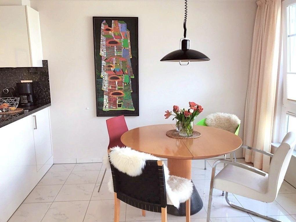 Die stilvoll eingerichtete Ferienwohnung Scholle 1.1 im Skandinavienblick bietet einen komfortablen Rückzugsort direkt am Meer in Hohwacht. Diese hochwertig ausgestattete Erdgeschosswohnung verfügt über eine offene, voll ausgestattete Küche mit Essbereich, ideal für gemeinsames Kochen. Der separate Schlafraum ist mit einem gemütlichen Doppelbett und einem großzügigen Kleiderschrank ausgestattet. Im lichtdurchfluteten Wohnbereich sorgt ein modernes Interieur mit Kabel-TV und WLAN für entspannte Stunden. Das elegante Duschbad bietet einen großen Spiegel, Handtuchwärmer und Föhn, wodurch ein Hauch von Wellness entsteht. Die Fußbodenheizung sorgt für Gemütlichkeit, während die geschmackvolle Farbgestaltung ein harmonisches Ambiente schafft. Außerdem ist ein Pkw-Stellplatz direkt vor dem Haus verfügbar. Scholle 1.1 ist der perfekte Ort für eine entspannte Auszeit an der Ostsee.