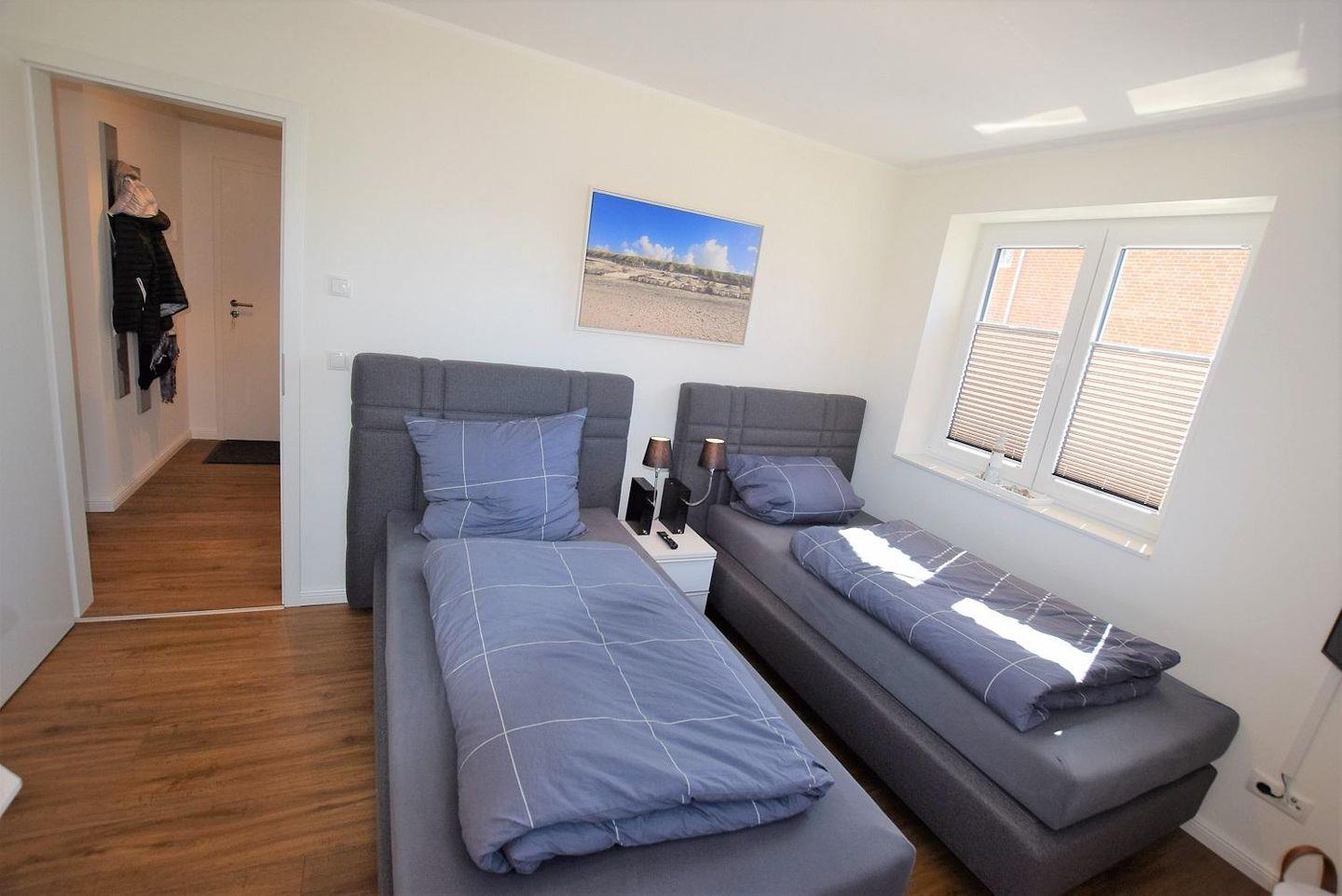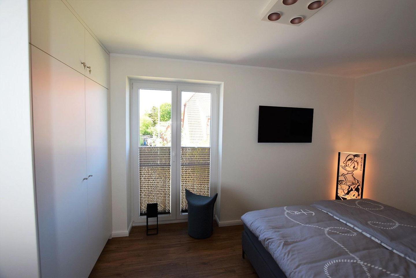 Beide Schlafzimmer der Wohnung sind zusätzlich zum Wohnbereich ebenfalls mit einem Fernseher ausgestattet. In den Schlafzimmer befindet sich ein Doppelbett und ein großer Kleiderschrank, in welchem Sie Ihr Gepäck bequem unterbringen können.