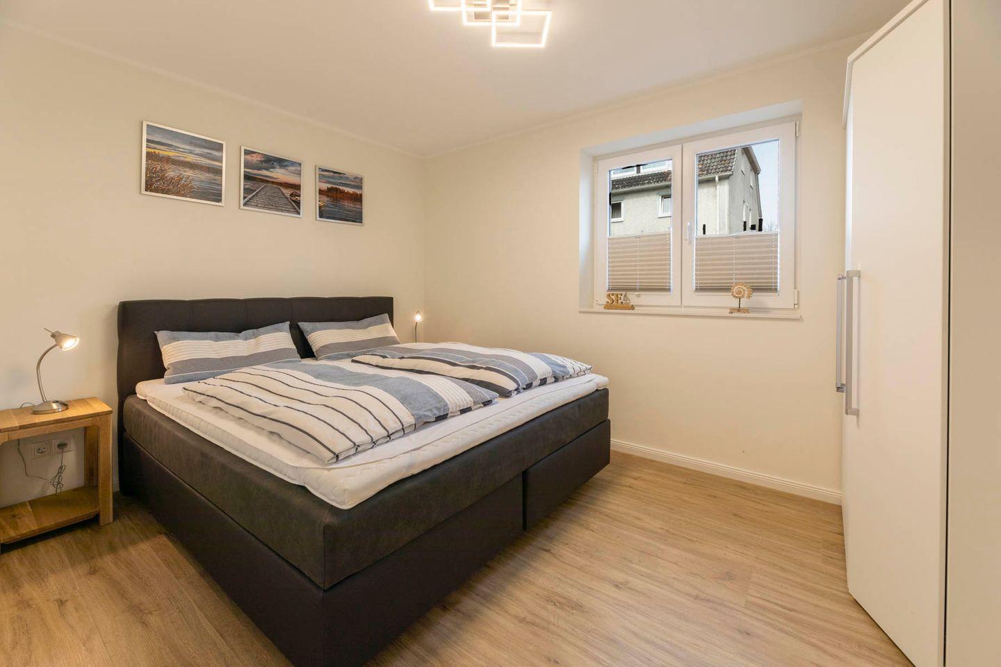 Die zwei Schlafzimmer mit großen Fenstern sind besonders hell, mit Doppelbetten, und geräumigem Kleiderschränken.