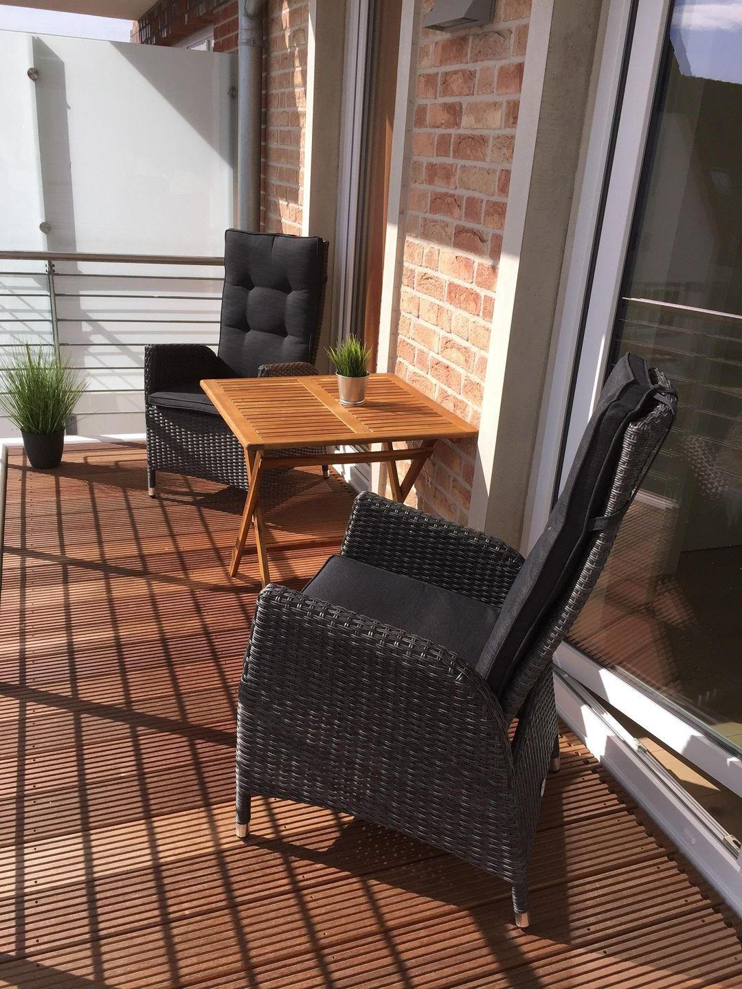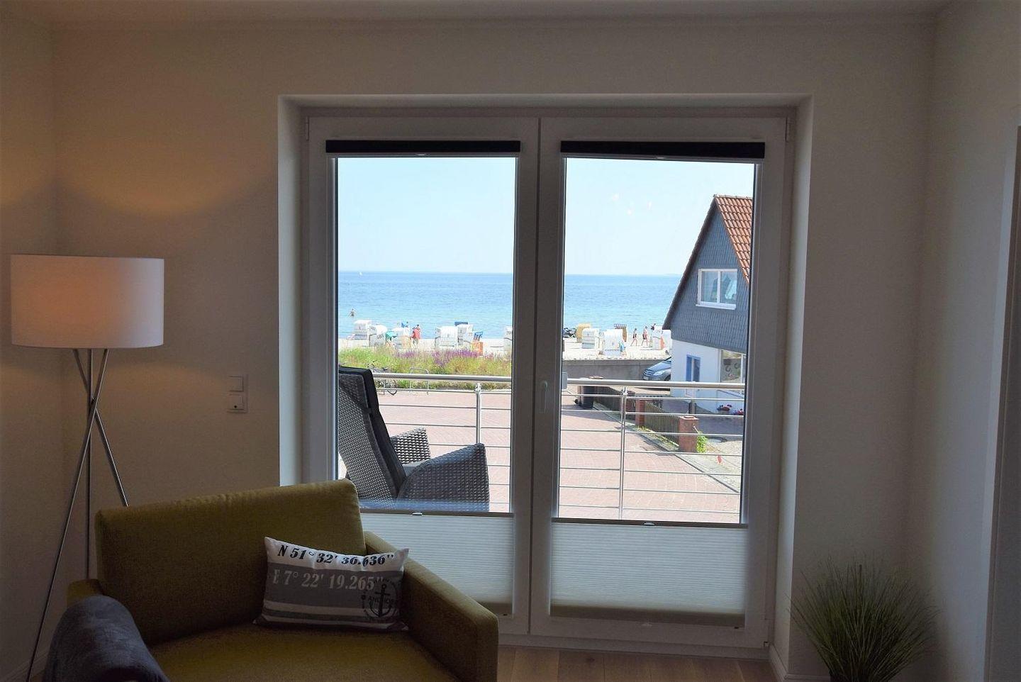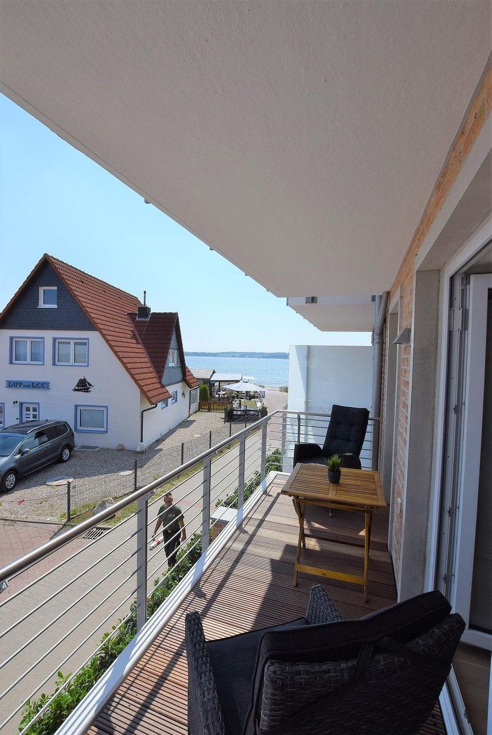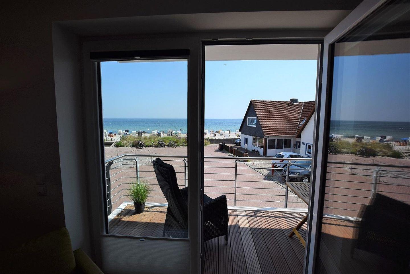 Direkt vom Wohnzimmer aus kann hier der große Balkon betreten werden. Zur Möblierung der Außenfläche finde Sie ein Tisch mit Stühlen. Dem gemütlichen Verweilen im Freien oder gemeinsamen Mahlzeiten an der frischen Luft steht also nichts im Wege. Der Blick fällt dabei direkt auf die wunderschöne Ostsee.