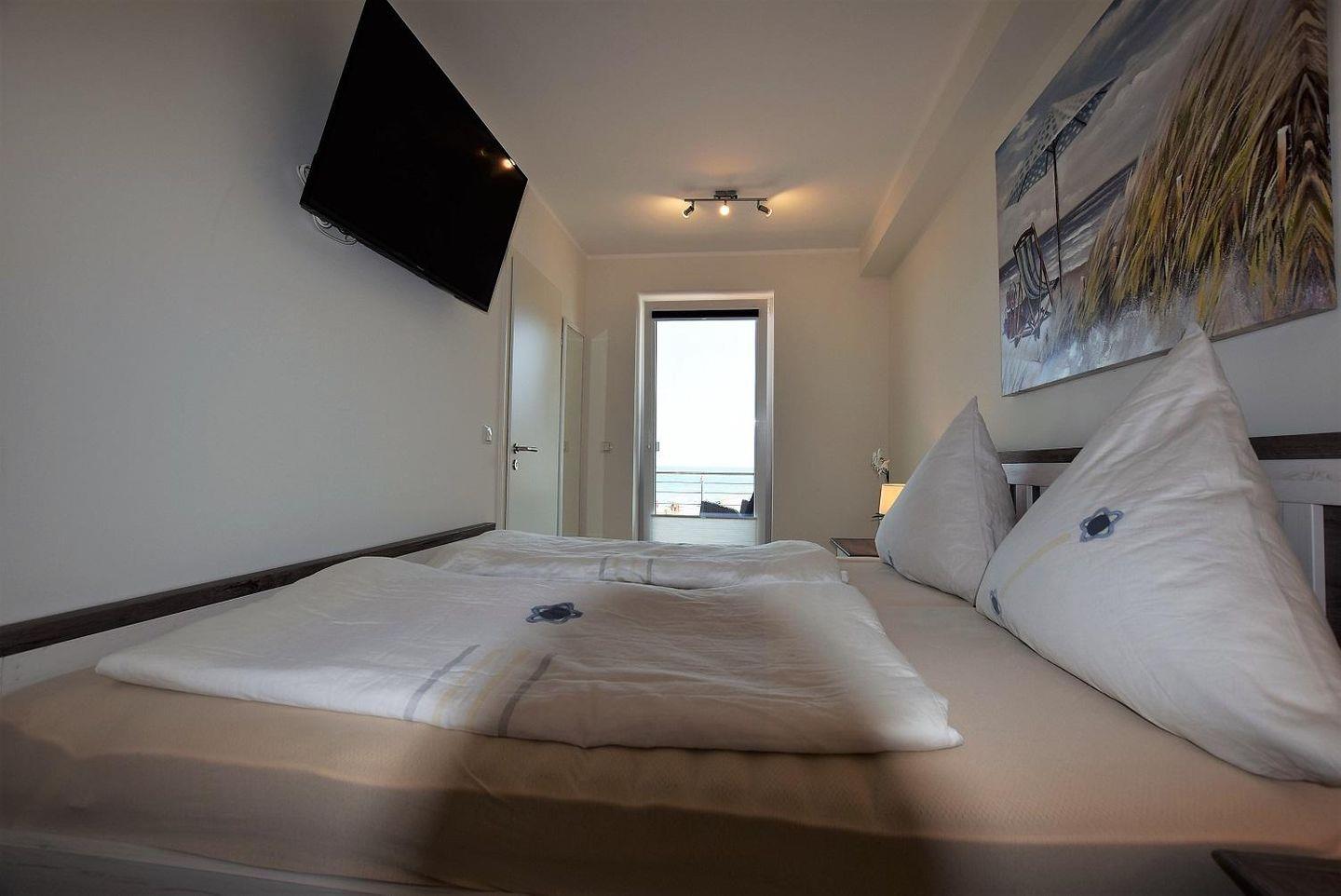 Direkt an der Strandpromenade gelegene Ferienwohnung „Strandparadies“ im 1 Obergeschoss des Hauses "Meeresblick" mit Balkon und traumhaften Ausblick. Hier finden maximal vier Personen nicht nur moderne Ausstattungsdetails und Meerblick, sondern auch viel Komfort.
