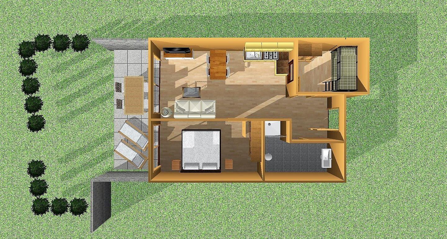 Die 60 Quadratmeter dieser charmanten und hochwertigen 3-Zimmer-Ferienimmobilie verteilen sich auf einen Wohn-/Essraum, ein Duschbad, ein Schlafzimmer mit Doppelbett und ein innenliegendes Schlafzimmer mit Etagenbett. Damit eignet sich die Wohnung hervorragend für 2-4 Gäste.