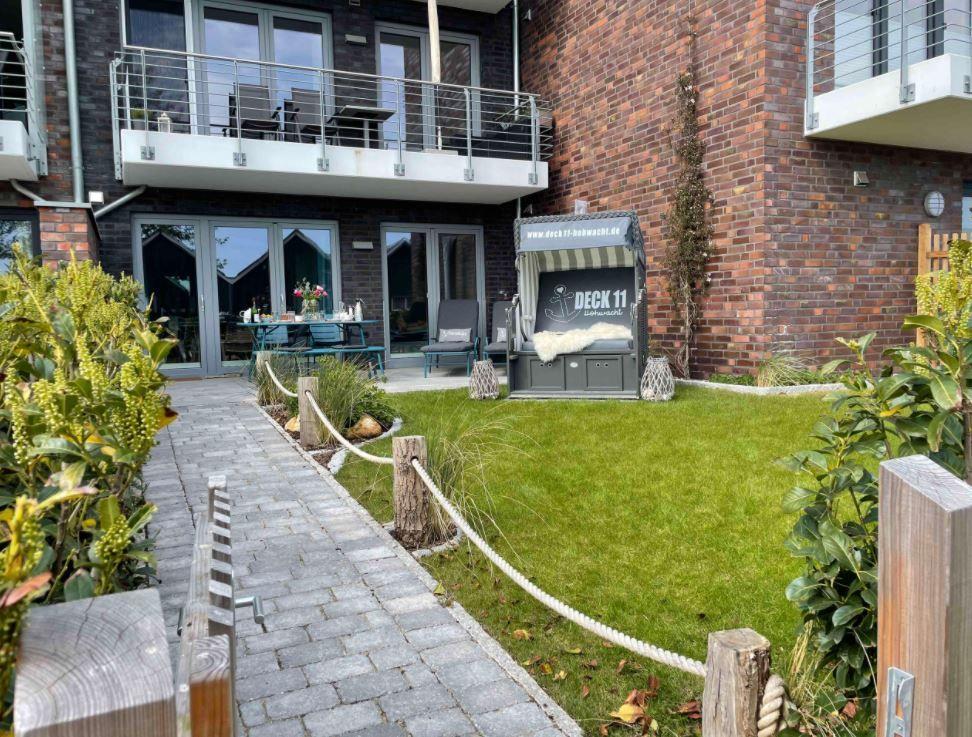 Zu den großen Vorzügen der liebevoll im skandinavisch-maritimen Stil eingerichteten Ferienwohnung „DECK 11“ zählt der große Garten mit vollständig möblierter Terrasse, einem gemütlichen Strandkorb mit Blick auf die Bucht - und dem direktem Zugang zum Strand. In nur wenigen Metern stehen Sie unmittelbar an der Wasserlinie. Näher geht es nicht!