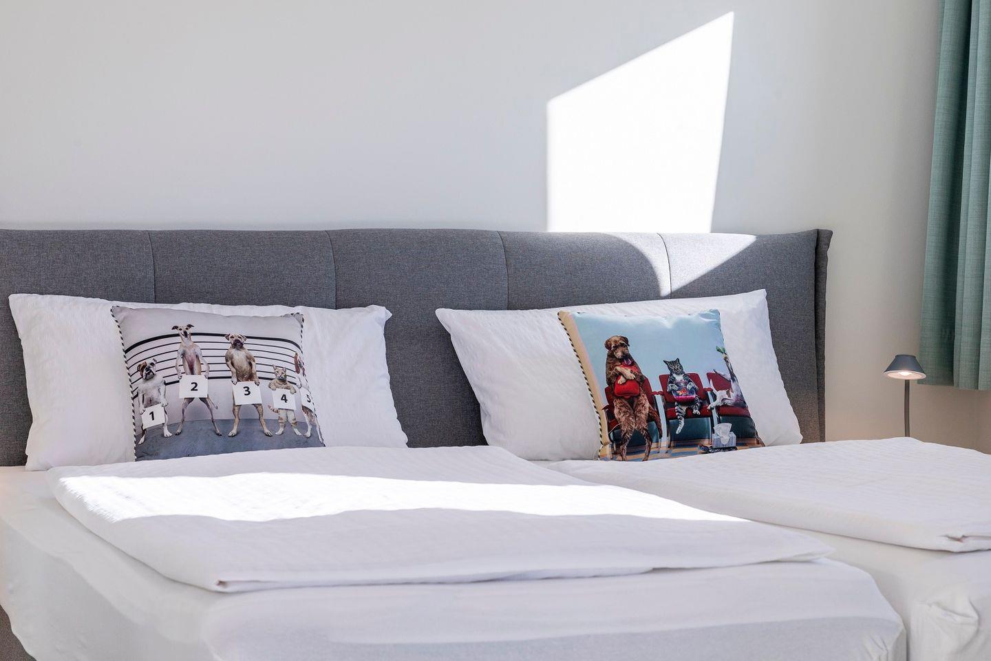 Entspannte Urlaubsnächte sind im komfortablen Schlafzimmer der Wohnung garantiert. Ein großer Schrank sorgt für reichlich Stauraum und das große Doppelbett für einen guten Schlaf.