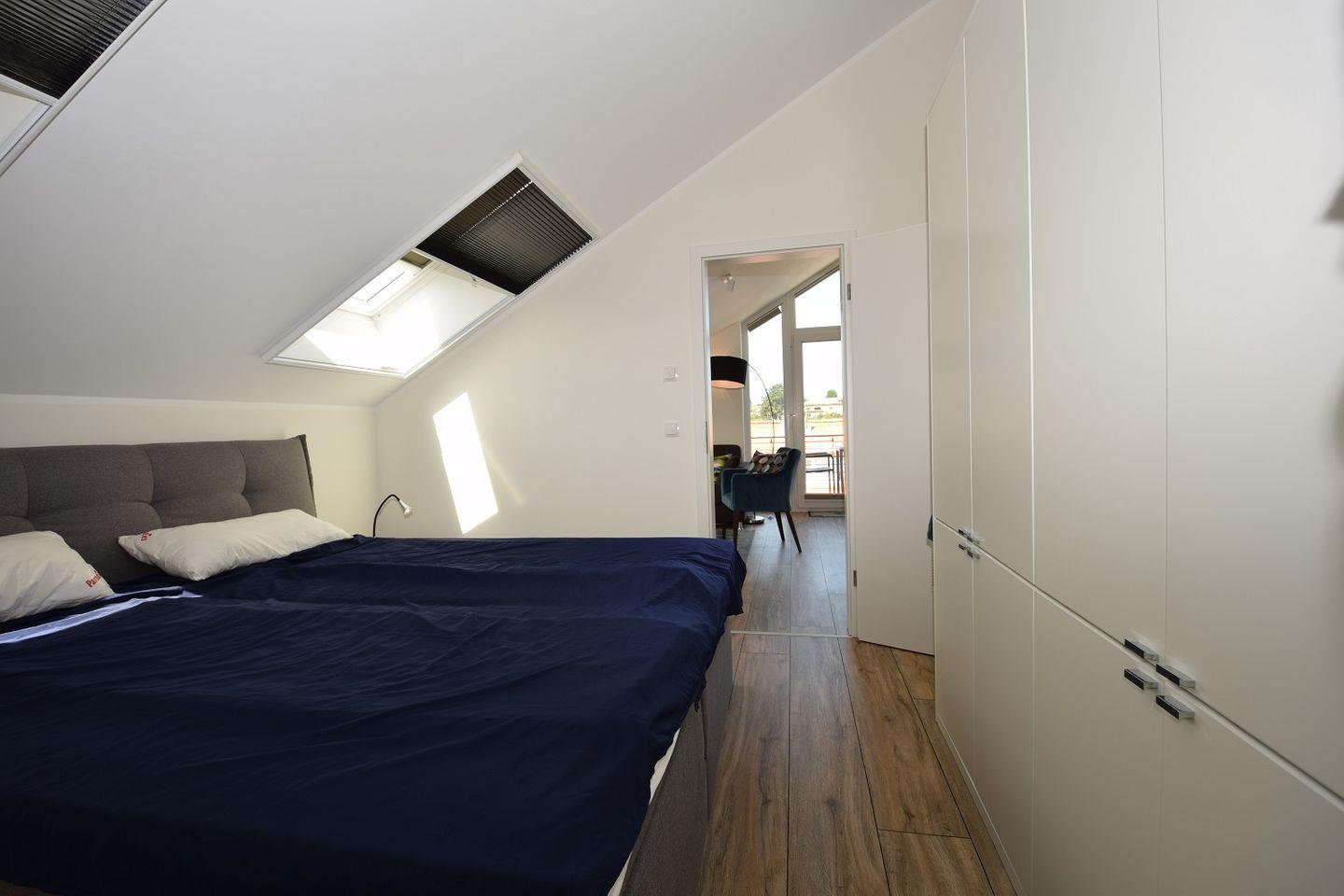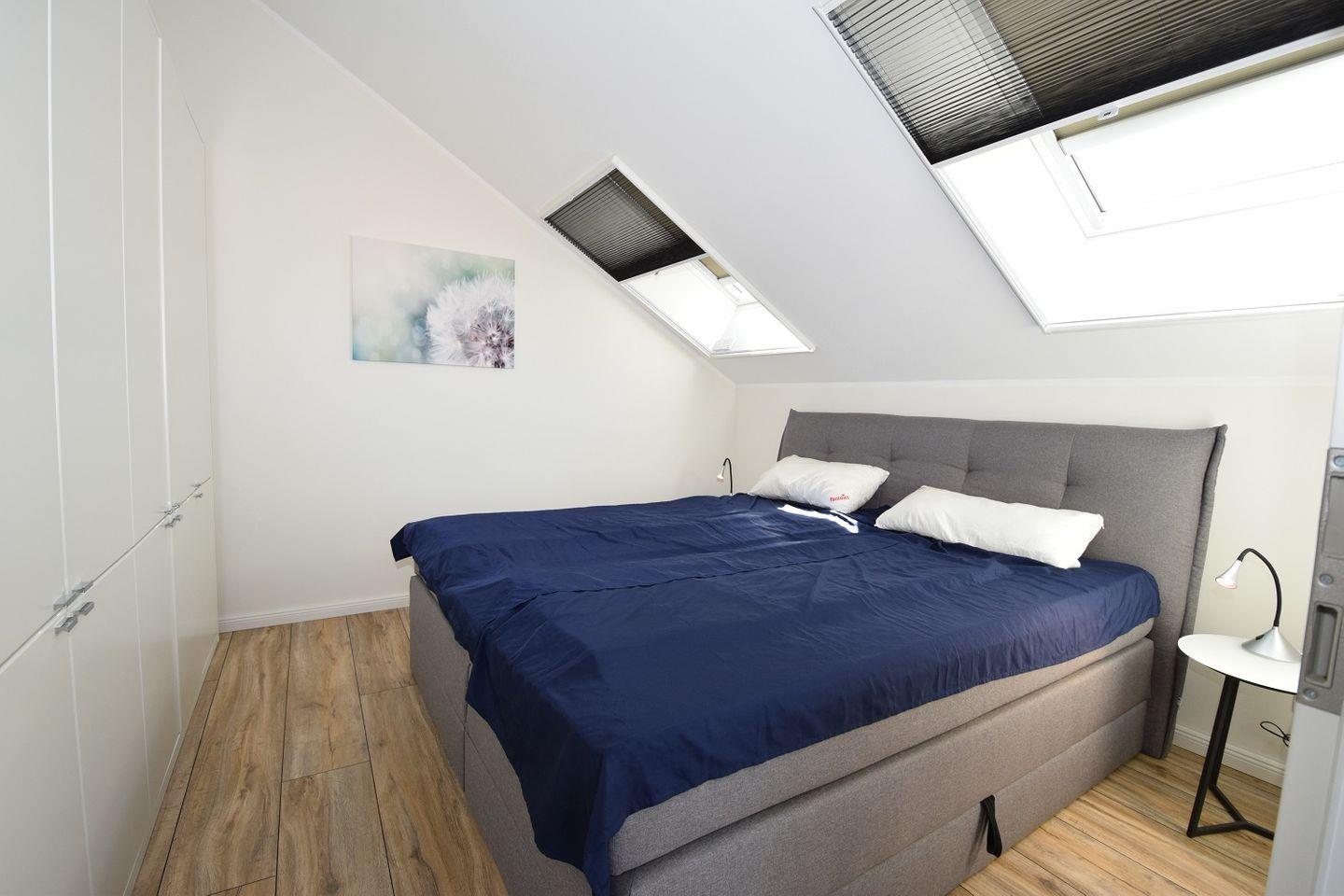 Entspannte Urlaubsnächte sind im komfortablen Schlafzimmer der Wohnung garantiert. Ein großer Schrank sorgt für reichlich Stauraum und das große Doppelbett für einen guten Schlaf.