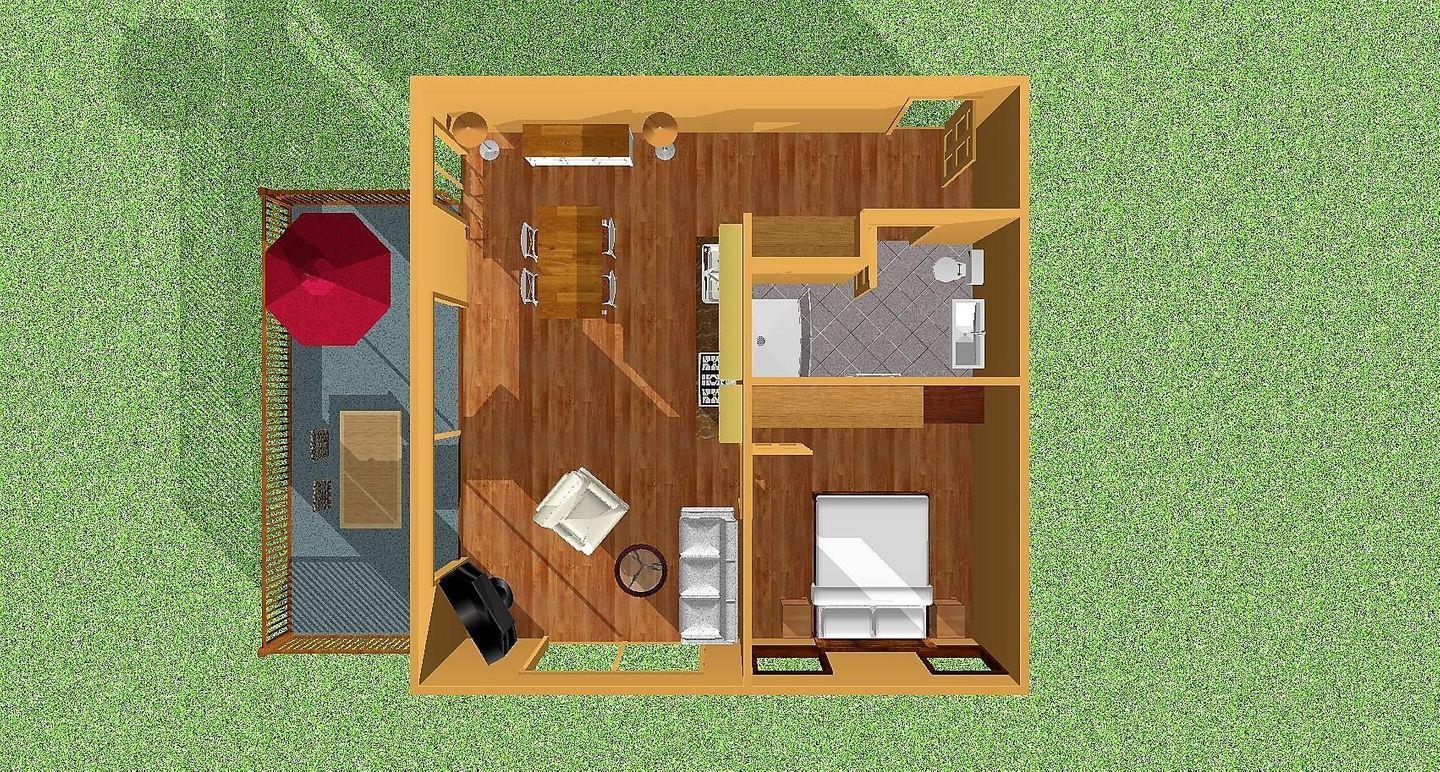 Bei Belegung mit 3 Personen, 1 Person auf dem Schlafsofa im Wohnzimmer.