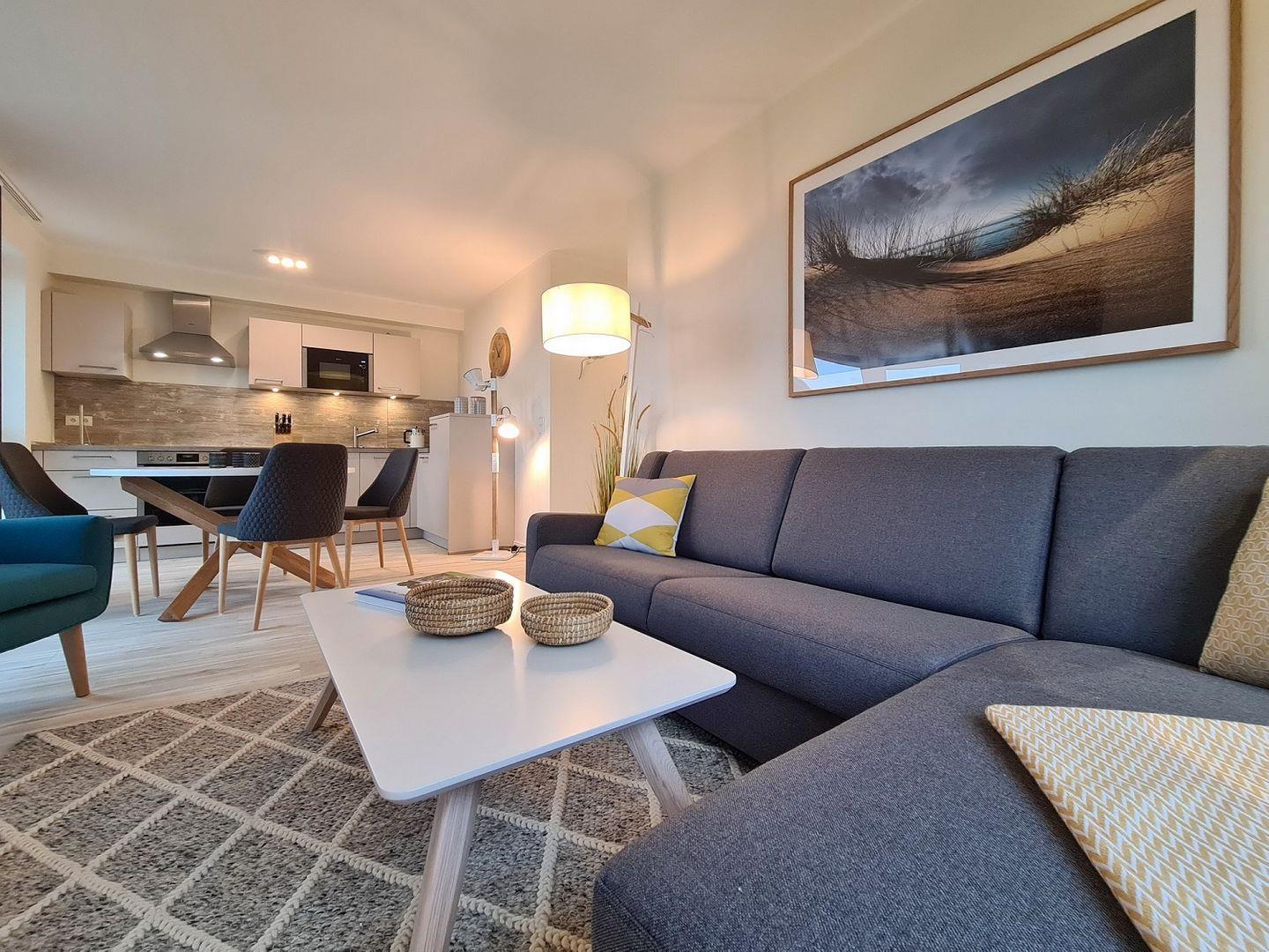 Das große Sofa, welches optional auch als Schlafsofa genutzt werden kann, lädt mit einem wertigen Flachbildfernseher zum Verweilen schöner Abendstunden ein.