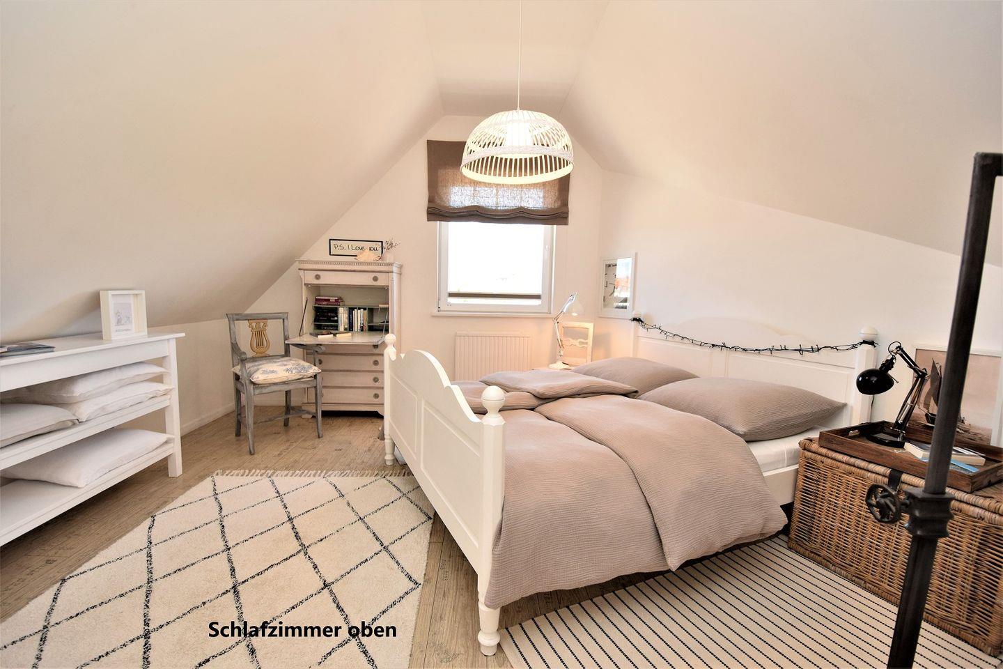Über eine Treppe gelangen Sie in die Galerie des Hauses, wo sich das große und gemütliche Schlafzimmer befindet. Dieses lädt zum Entspannen und zu traumhaften Nächten ein.