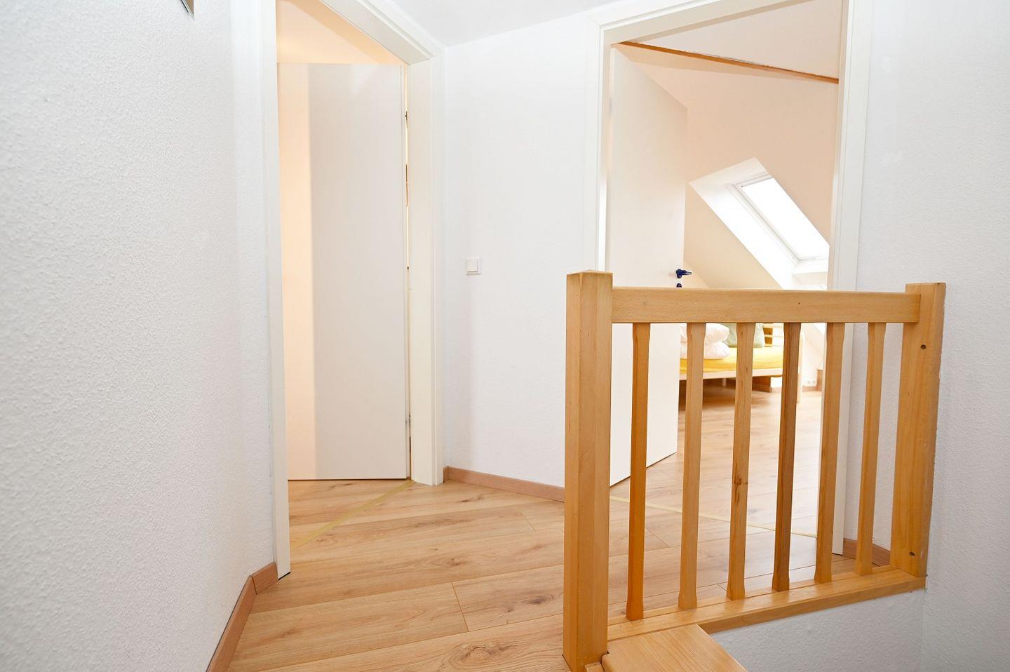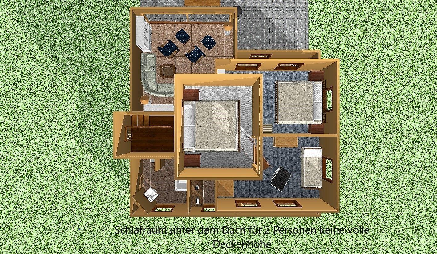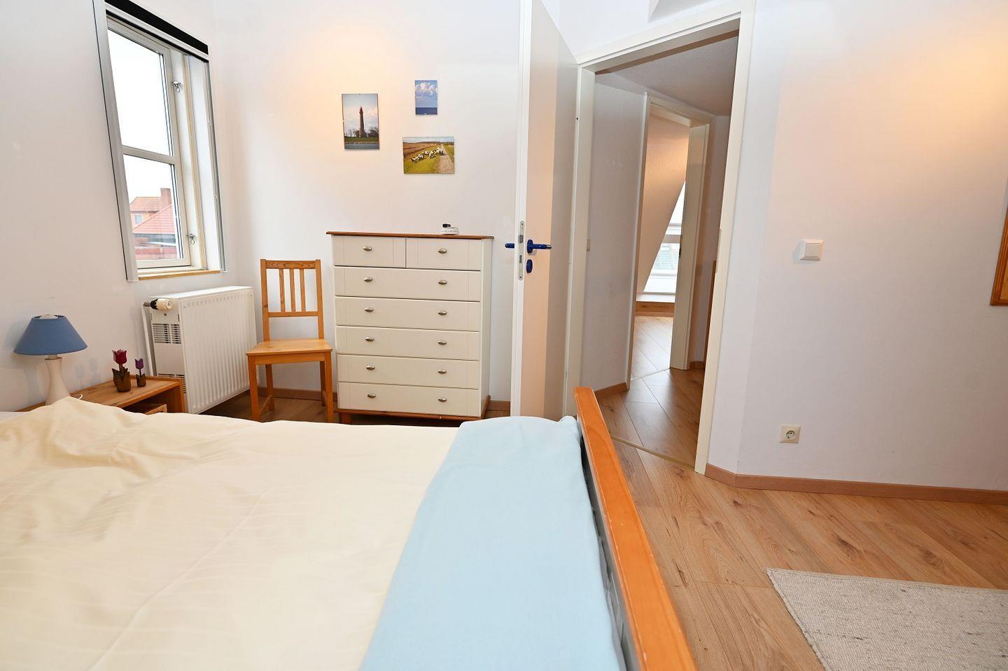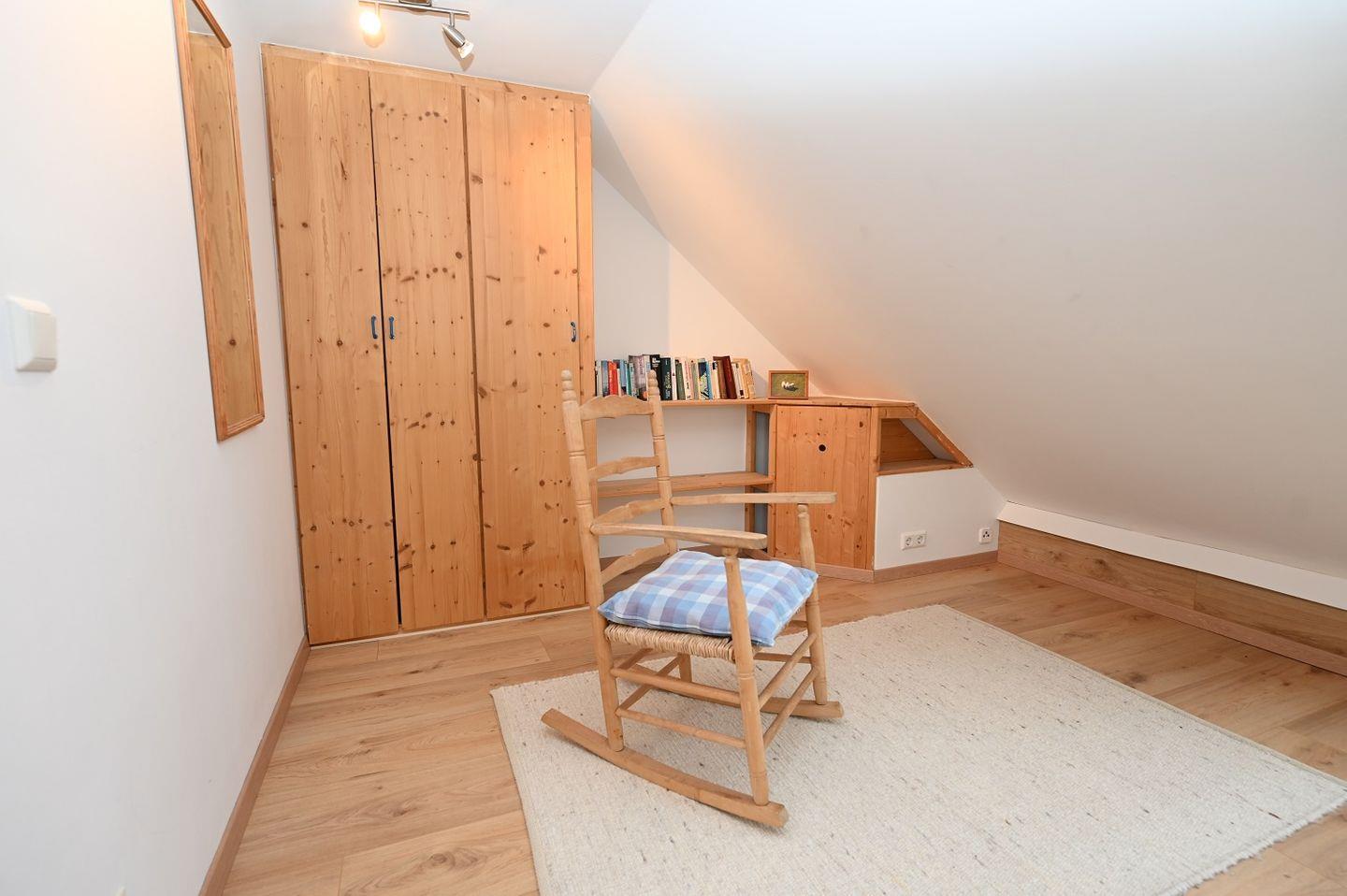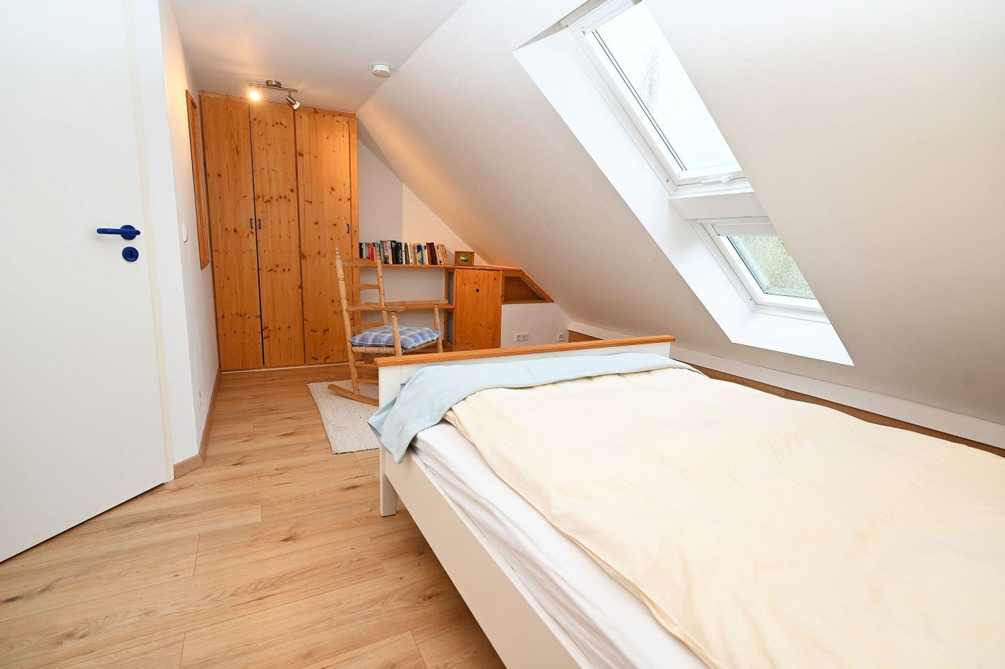 Das große Schlafzimmer liegt im 1. OG des Hauses. Hier finden Sie einen Kleiderschrank für reichlich Komfort. Das 2. Schlafzimmer ist aus einem Raum im 2. OG über eine Treppe/Leiter zugänglich. Dieses Bett befindet sich unter dem Dach und bietet somit Platz für bis zu 2 Personen. Das kleine Schlafzimmer mit Einzelbett liegt im Erdgeschoss des Hauses. Dieses grenzt unmittelbar an den Wohnbereich.