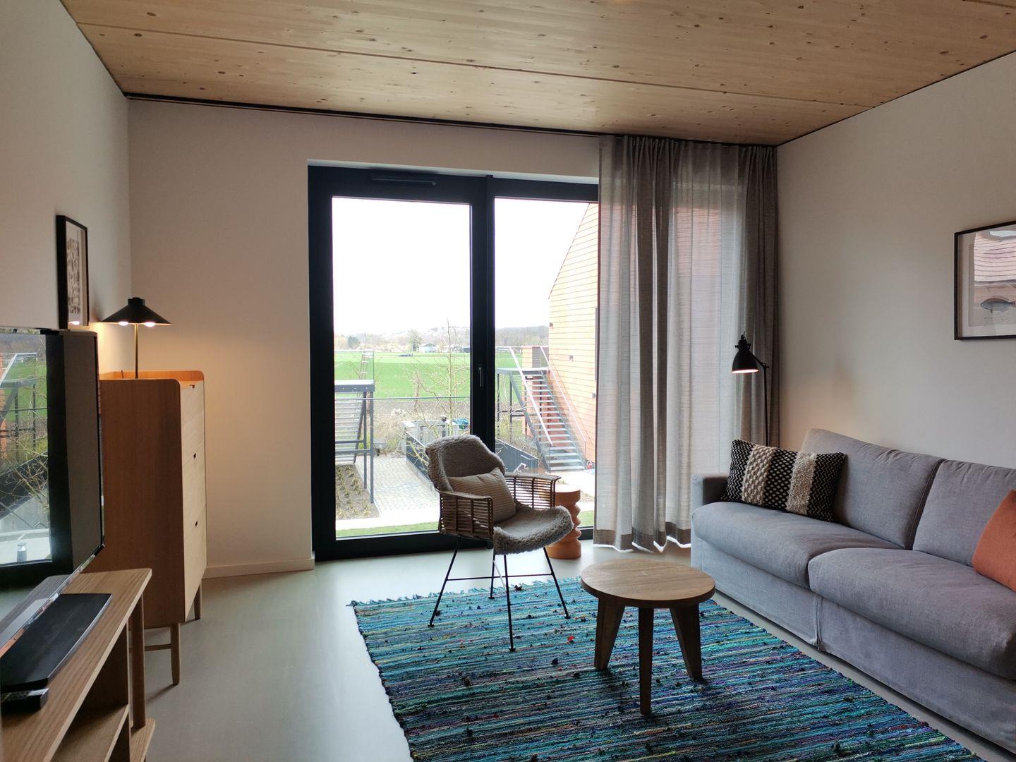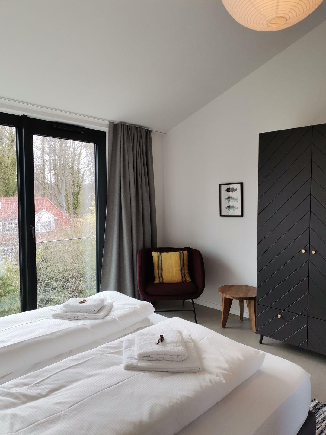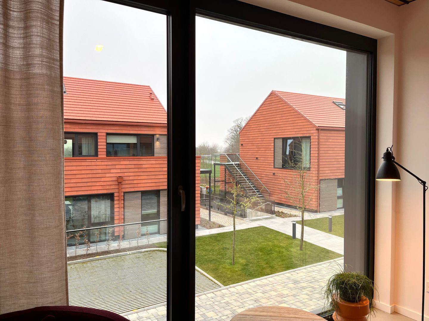 De ole School - nachhaltige Ferienwohnung mit Hygge-Feeling an der Ostsee. Zwei Geschosse mit Dachterrasse sorgen in dieser stilvollen Maisonette-Ferienwohnung für viel Freiraum. Ein separater Wohnbereich, der auch als Schlafzimmer genutzt werden kann, und ein extra Gäste-WC machen diesen Wohnungstyp besonders vielseitig und komfortabel. In der oberen Etage befinden sich ein Schlafzimmer mit einem Doppelbett, die Dachterrasse und ein schickes Badezimmer mit Dusche und WC. Der Wohn- und Essbereich, der durch eine Schiebetür abgetrennt ist, die offene Küche, das Gäste-WC und eine Abstellkammer mit Waschmaschine befinden sich in der unteren Etage. Die Ferienwohnung hat kostenloses schnelles WLAN, einen Smart-TV, eine komplette Küchenausstattung und eine Dachterrasse mit Weitblick aufs Quartier und die Felder. Ein intelligentes Schließsystem mit PIN-Code macht den Check-In flexibel. Jedes Apartment verfügt außerdem über zusätzlichen Stauraum im Keller (inkl. Fahrradkeller).