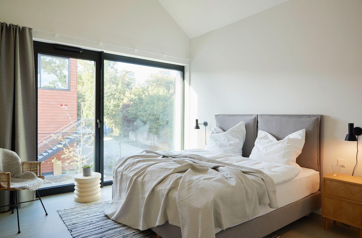 De ole School - nachhaltige Ferienwohnung mit Hygge-Feeling an der Ostsee. Dieses Loft-Apartment, mit z. T. über 6 Meter hohen Decken, vereint auf 148 Quadratmetern einen großzügigen Wohnbereich mit maximaler Privatsphäre. Die lichtdurchflutete Ferienwohnung im skandinavischen Stil bietet bei drei Schlafzimmern und zwei Bädern Platz für die 6 bis max. 10 Gäste. In den Dachkernen von zwei Schlafzimmern liegen Futons für „kletterfeste“ Gäste. Die Küche und der Wohn-/ Essbereich bieten Zutritt auf die ca. 40 m2 große Dachterrasse. Ein Kaminofen sorgt auch in den Wintermonaten für gemütliche Atmosphäre. Eingerichtet ist das Apartment im modernen skandinavischen Stil. Es gibt kostenloses schnelles WLAN, einen Smart-TV und eine komplette Küchenausstattung. Ein intelligentes Schließsystem vereinfacht die Schlüsselübergabe und verbessert die Sicherheit. Jedes Apartment verfügt außerdem über zusätzlichen Stauraum im Keller (inkl. Fahrradkeller, Ladestationen für E-Bikes uvm.).