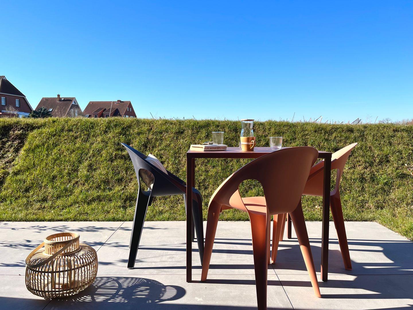 Hier zeigen wir Euch unsere charmante Ferienwohnung für den Urlaub zu zweit, zu dritt oder zu viert. Mit ihren 58 m2 bietet diese Wohnung ein angenehmes Wohngefühl und eine hochwertige, komfortable Ausstattung. Hier fehlt es euch an nichts. Das Apartment verfügt über einen gemütlichen Wohn- und Essbereich, ein Schlafzimmer und eine geräumige offene Küche. Das Sofa im Wohnbereich kann zu einem bequemen Schlafplatz für 2 weitere Personen umfunktioniert werden. Außerdem gibt es ein modernes Badezimmer mit Dusche und WC, einen Abstellraum im Untergeschoss und eine große Terrasse mit Blick ins Grüne.