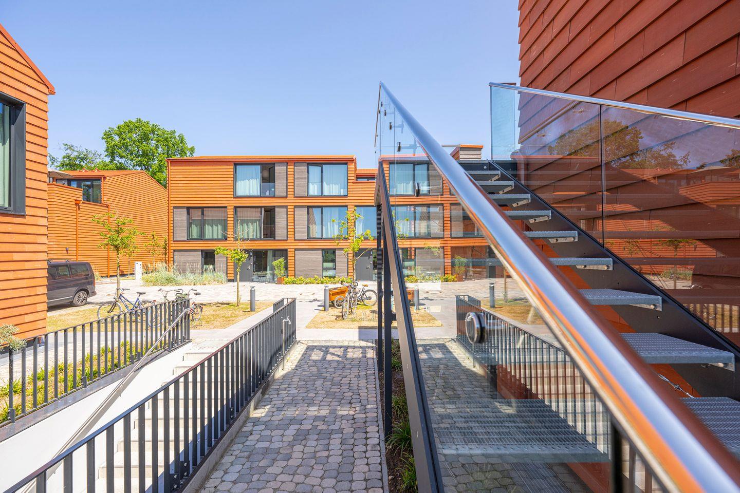 De ole School - nachhaltige Ferienwohnung mit Hygge-Feeling an der Ostsee. Dieses Loft-Apartment, mit z. T. über 6 Meter hohen Decken, vereint auf 148 Quadratmetern einen großzügigen Wohnbereich mit maximaler Privatsphäre. Die lichtdurchflutete Ferienwohnung im skandinavischen Stil bietet bei drei Schlafzimmern und zwei Bädern Platz für die 6 bis max. 10 Gäste. In den Dachkernen von zwei Schlafzimmern liegen Futons für „kletterfeste“ Gäste. Die Küche und der Wohn-/ Essbereich bieten Zutritt auf die ca. 40 m2 große Dachterrasse. Ein Kaminofen sorgt auch in den Wintermonaten für gemütliche Atmosphäre. Eingerichtet ist das Apartment im modernen skandinavischen Stil. Es gibt kostenloses schnelles WLAN, einen Smart-TV und eine komplette Küchenausstattung. Ein intelligentes Schließsystem vereinfacht die Schlüsselübergabe und verbessert die Sicherheit. Jedes Apartment verfügt außerdem über zusätzlichen Stauraum im Keller (inkl. Fahrradkeller, Ladestationen für E-Bikes uvm.).