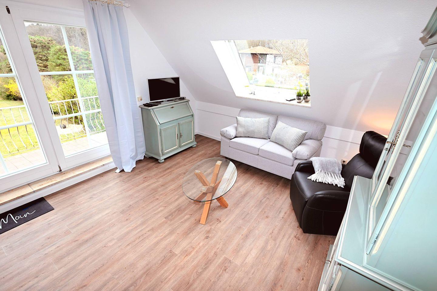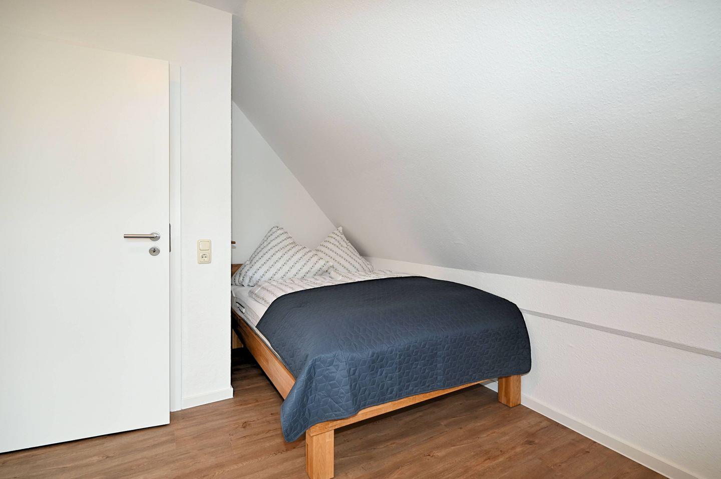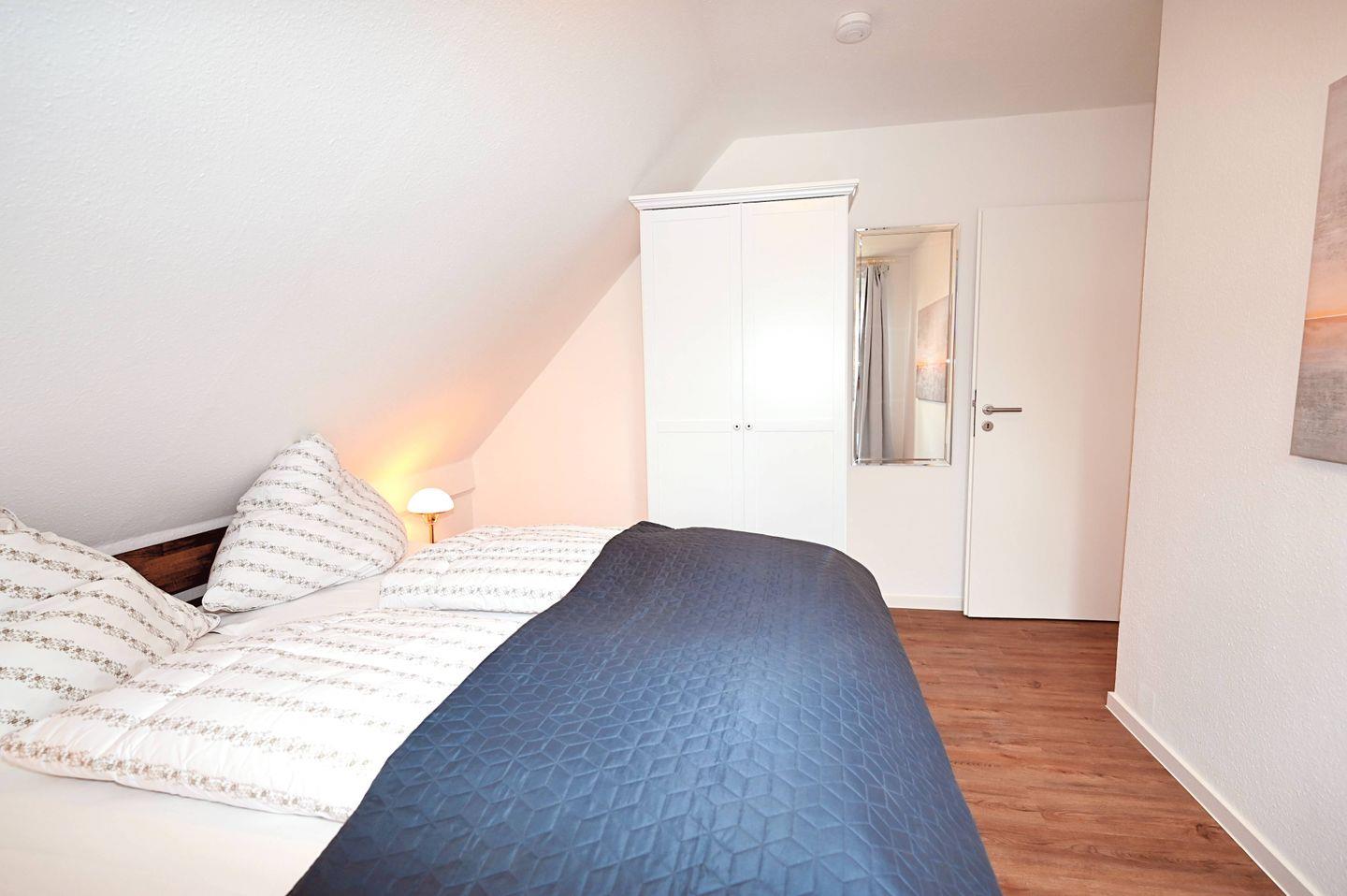 Die 3-Zimmer-Ferienwohnung ist für 4 Personen ausgelegt. Sie besteht aus einem offenen Wohn- und Essbereich mit integrierter Küche, die bestens ausgestattet ist: Backofen, Mikrowelle, Kühlschrank mit Gefrierfach, Kaffeemaschine, Wasserkocher, Toaster und Herd. Der Wohnbereich lädt mit einem gemütlichen Sofa und einem bequemen Sessel auch in den Abendstunden zum Verweilen ein. Beide Schlafzimmer verfügen über ein komfortables Doppelbett mit geräumigem Kleiderschrank und Nachttischlampen. Die Fenster in den Schlafzimmern lassen sich durch Verdunkelungsgardinen verdunkeln, sodass Sie in Ruhe ausschlafen können.